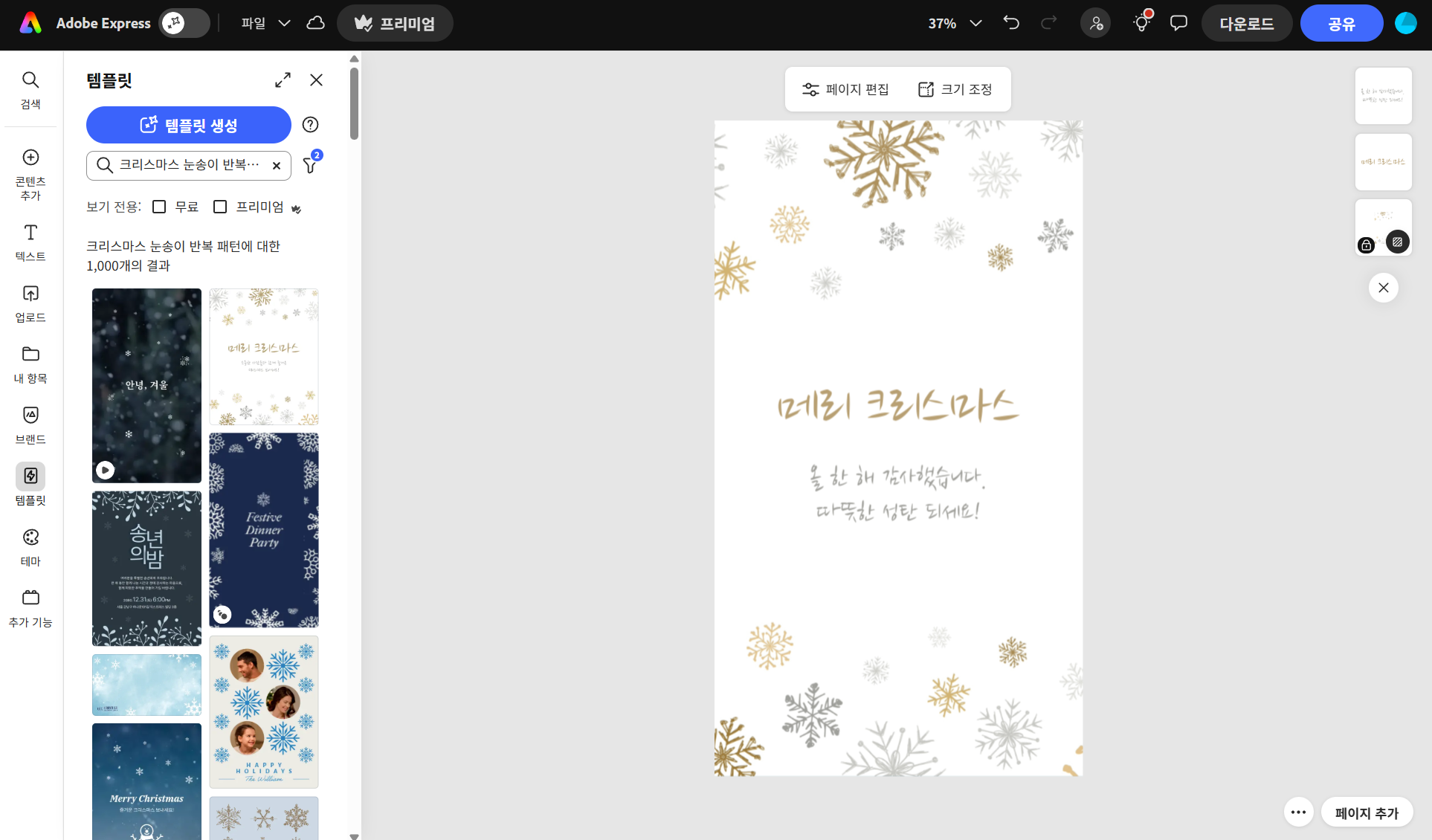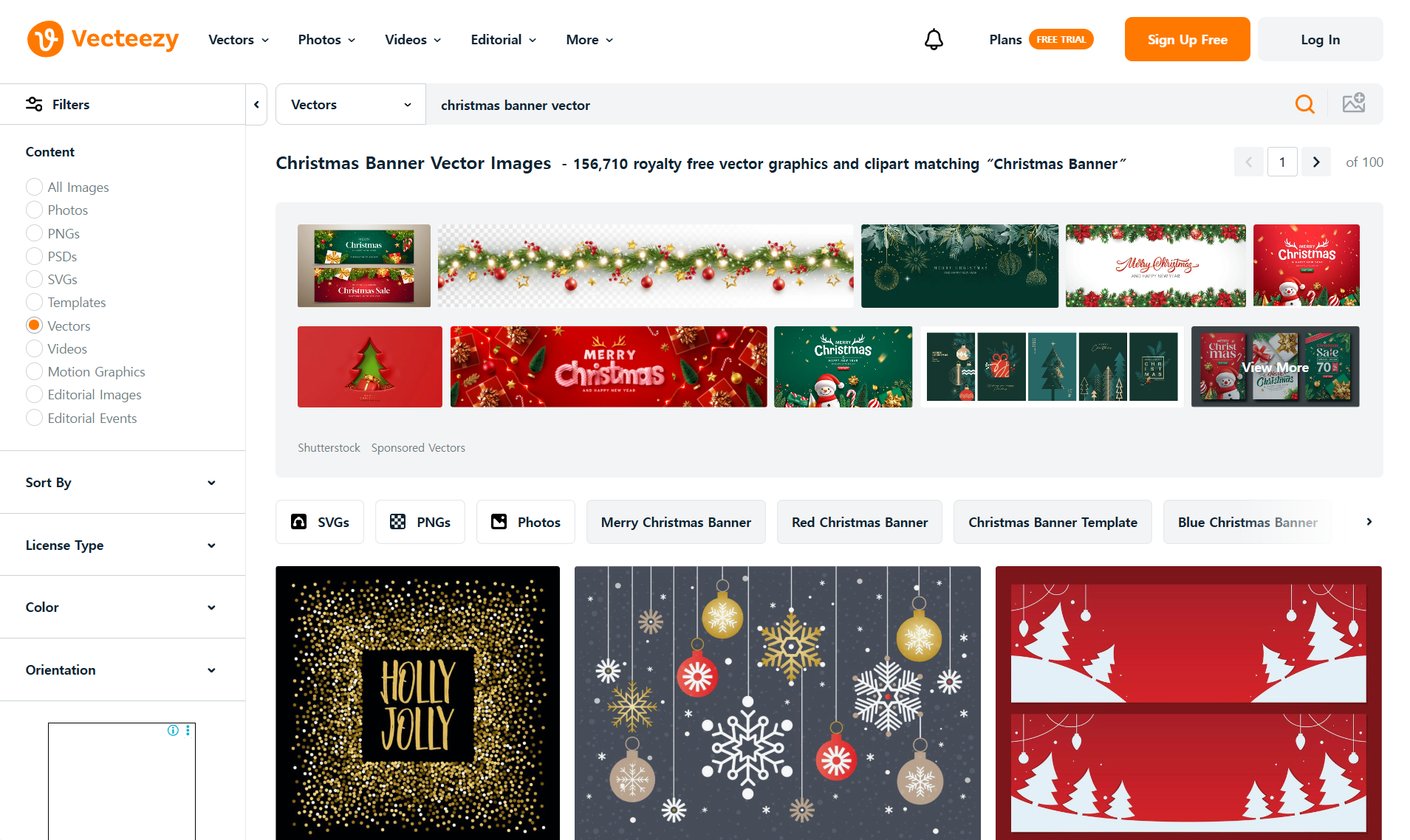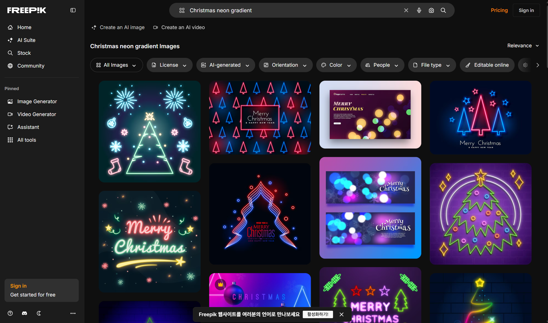 무료 계정으로도 충분히 활용 가능한 크리스마스 벡터 소스를 제공합니다. 텍스처, 리본, 배너 템플릿까지 다양하게 갖춰져 있어요. 자체적인 편집 도구를 제공하니 템플릿을 바로 수정해서 사용할 수 있습니다.