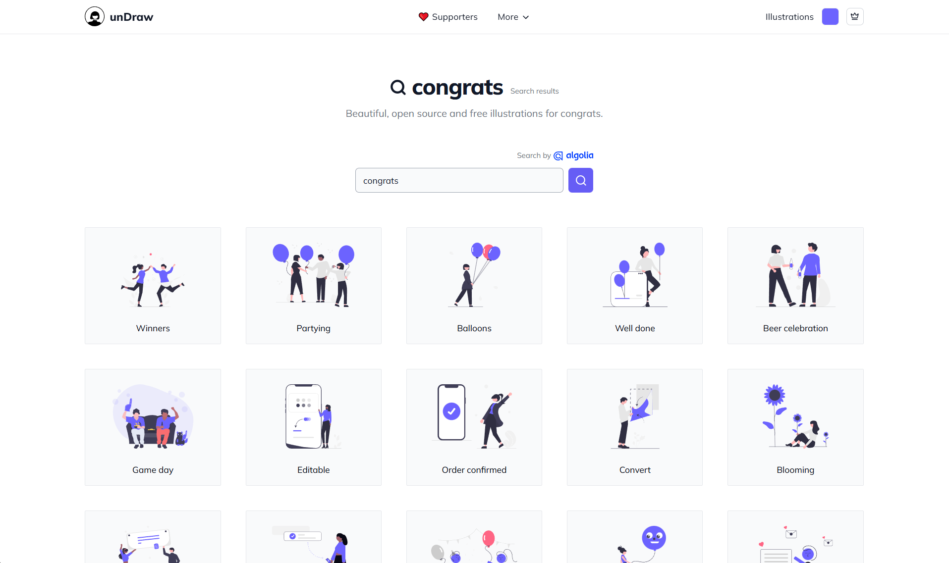 깔끔한 플랫 스타일의 모던한 일러스트가 특징입니다. Christmas, Santa 등의 직접적인 키워드로 검색가능한 요소도 제공하지만, 'connection', 'congrats' 등의 콘셉트로 검색하면 브랜드 톤에 맞추기 쉬운 세련된 연말 분위기를 연출할 수 있어요.