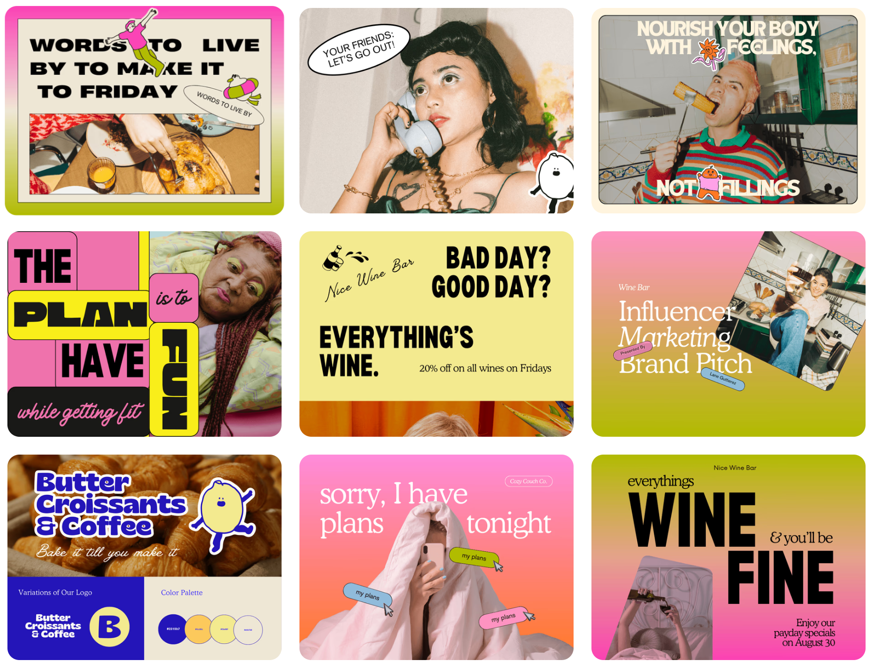 이 트렌드는 비즈니스와 즐거움을 섞는 재미있는 방법으로 사용될 수 있습니다. 이 유쾌하면서도 전략적인 스타일은 유머와 캐주얼한 요소를 혼합한 디자인도 전문적인 디자인이 될 수 있다는 것을 보여줍니다. 바보같은 silly 키워드는 92% 증가, 재미있는 funny 키워드는 36% 증가, 유머 humour 키워드는 27% 검색 증가를 보여 주었다고 합니다.