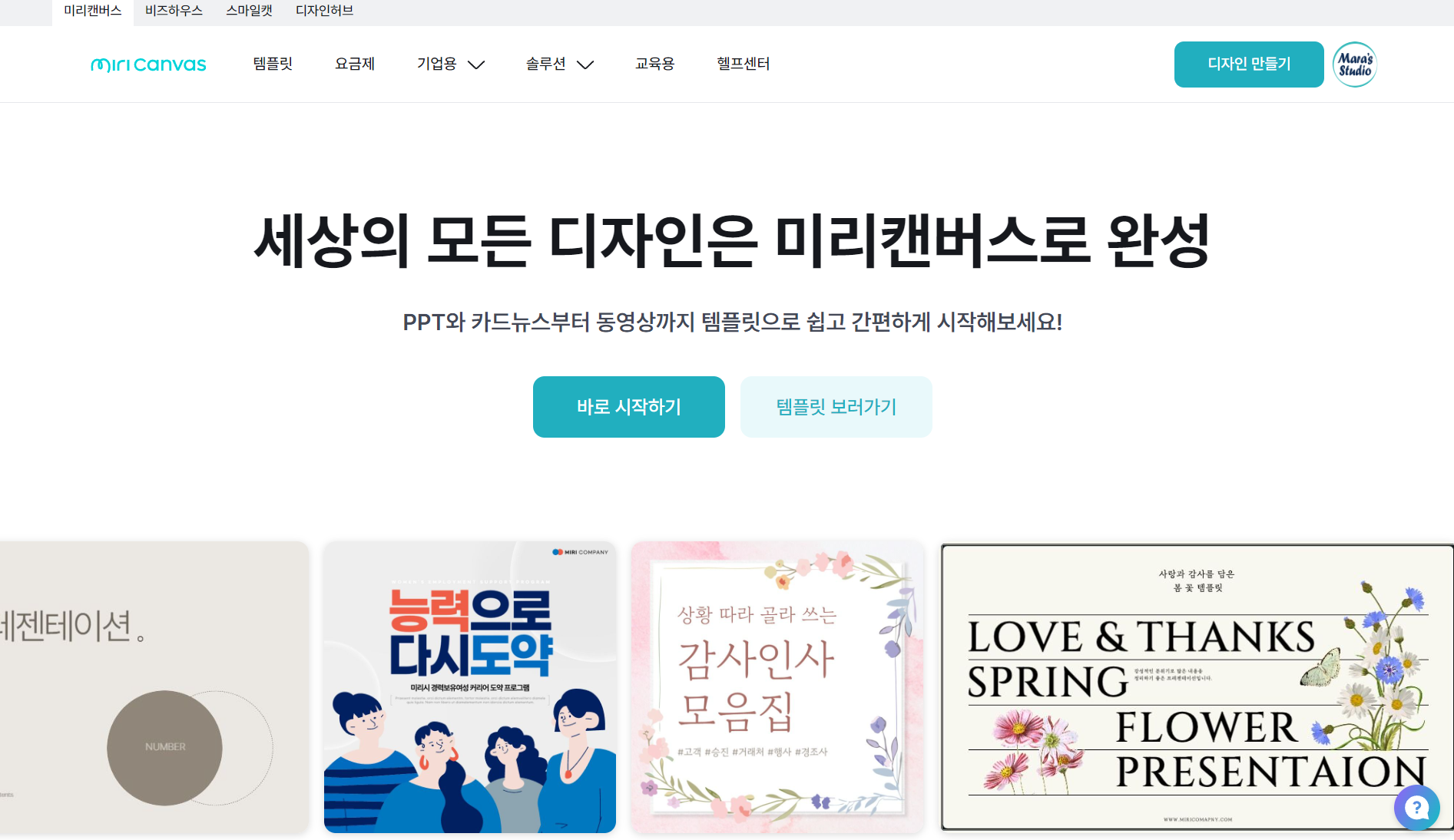 미리캔버스는 AI 기능을 활용해 사용자가 쉽게 전문적인 디자인을 만들 수 있는 국내 온라인 플랫폼입니다. 최근까지 계속 되고 있는 베타 버전 업데이트를 통해 AI 관련 기능이 계속 보강되고 있습니다. 주요 AI 기능으로 AI 프레젠테이션 생성, AI 라이팅, AI 이미지 생성이 있으며, 5만 개 이상의 무료 템플릿을 제공합니다. 무료 버전은 기본 기능과 제한된 크레딧을 제공하며, Pro(14,900원)와 Enterprise(33,000원) 요금제도 있습니다. 미리캔버스의 장점은 사용의 용이성, 다양한 무료 템플릿의 제공, AI 기능을 통한 시간 절약 및 창의적인 디자인 가능성이 있습니다. 단점으로는 무료 요금제에서 제공되는 크레딧과 기능에 제한(매일 100크레딧)이 있으며, 일부 고급 기능은 유료 요금제에서만 이용할 수 있다는 점을 들 수 있습니다.