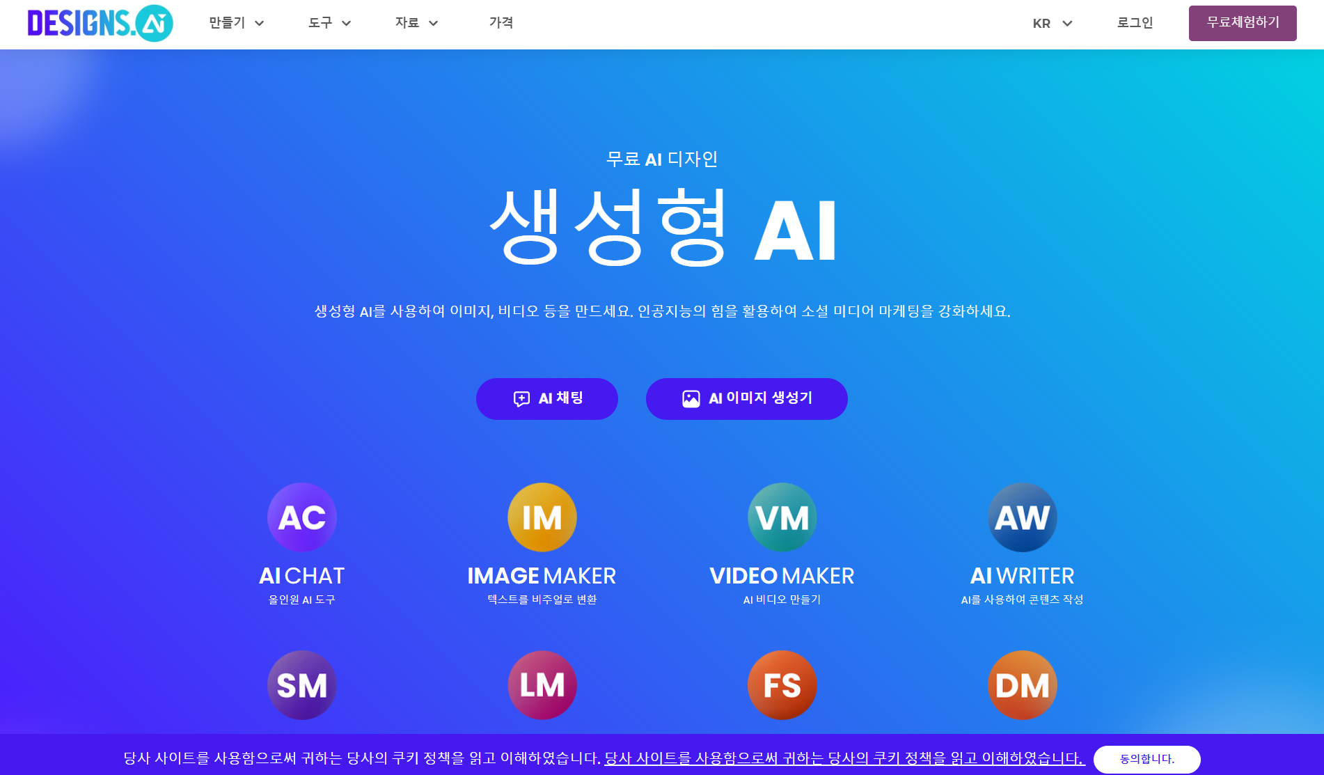 Designs.ai는 로고, 비디오, 이미지, 음성 등을 쉽게 생성할 수 있는 AI 기반 온라인 디자인 도구 모음입니다. 주요 기능으로는 AI 채팅, 이미지 생성기, 비디오 생성기, 로고 메이커 등이 있으며, 다양한 템플릿과 미디어 라이브러리를 제공합니다. Designs.ai 의 강점은 개인의 스타일 선호도에 맞게 디자인 솔루션을 맞춤화하여 모든 창의적인 요구 사항에 대해 개인화되고 다양한 접근 방식을 보장하는 기계 학습 기능에 있습니다. 가격은 기본 플랜이 월 $29, 프리미엄 플랜이 월 $69입니다. 장점으로는 사용자 친화적인 인터페이스와 빠른 콘텐츠 생성, 다양한 에셋 사용 등이 있으며, 단점으로는 AI의 키워드 인식 오류와 유료 구독의 부담을 들 수 있습니다.