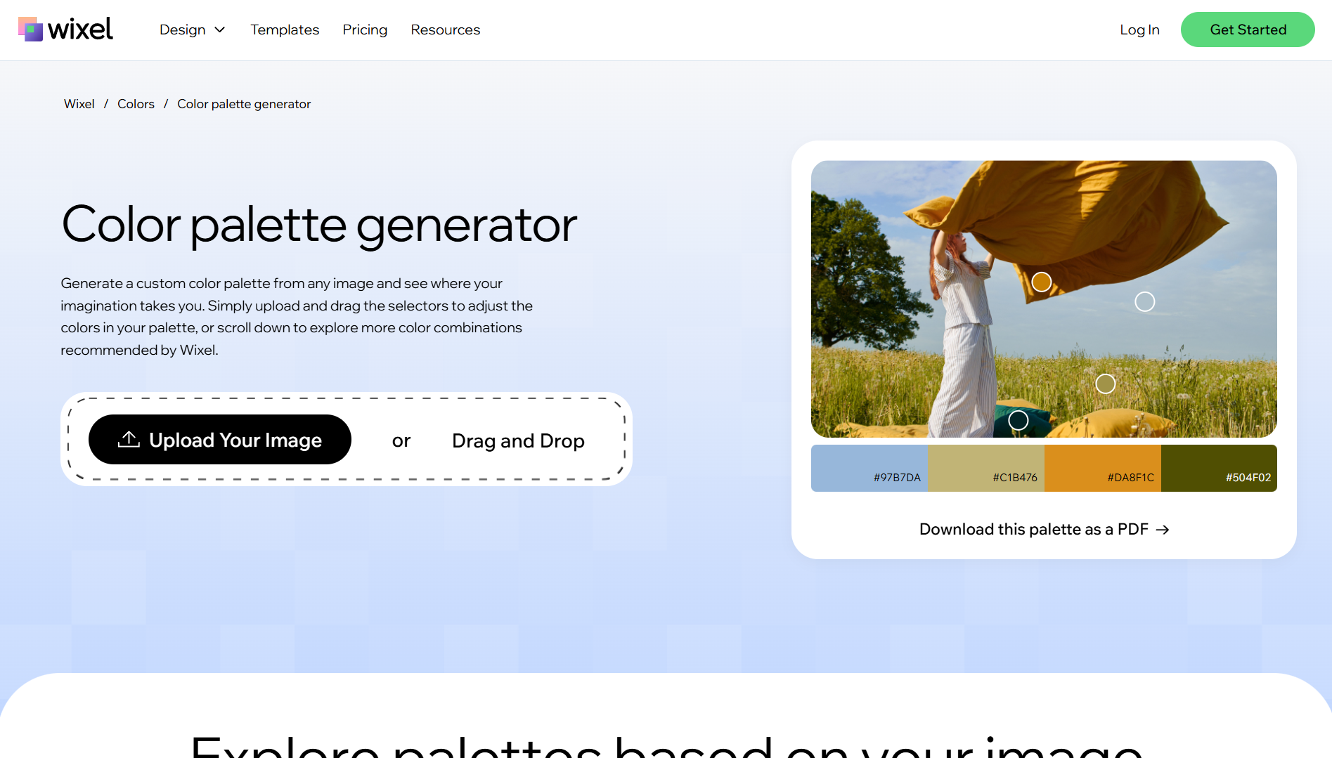 Wixel 색상 팔레트 생성기는 Wix에서 제공하는 무료 색상 팔레트 생성 도구입니다. 이미지를 업로드하면 해당 이미지에서 자동으로 색상을 추출하여 조화로운 팔레트를 생성합니다. 사용이 쉽고 빠르며 완전 무료입니다. 로고, 웹사이트, 일러스트레이션 작업에 적합합니다.