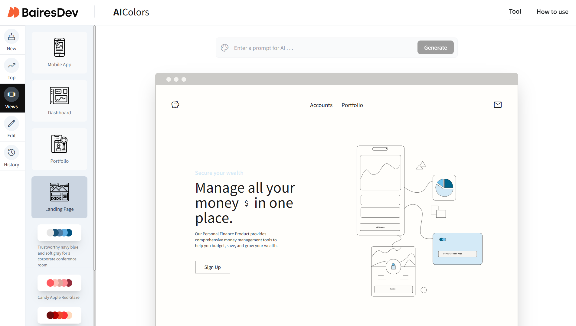 텍스트 입력에 기반하여 색상 팔레트를 생성하는 직관적인 AI 도구입니다. 사용하기 쉽고 효율적이며 디자인 품질을 향상시킵니다. 프로젝트 분위기나 테마를 나타내는 단어나 구문을 입력하는 것이 좋습니다.