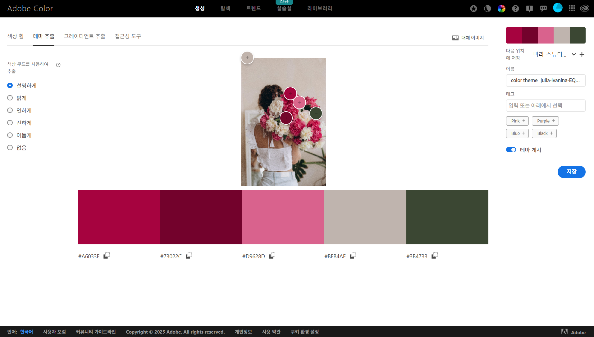 - 'Extract Theme' 기능으로 이미지에서 팔레트 추출