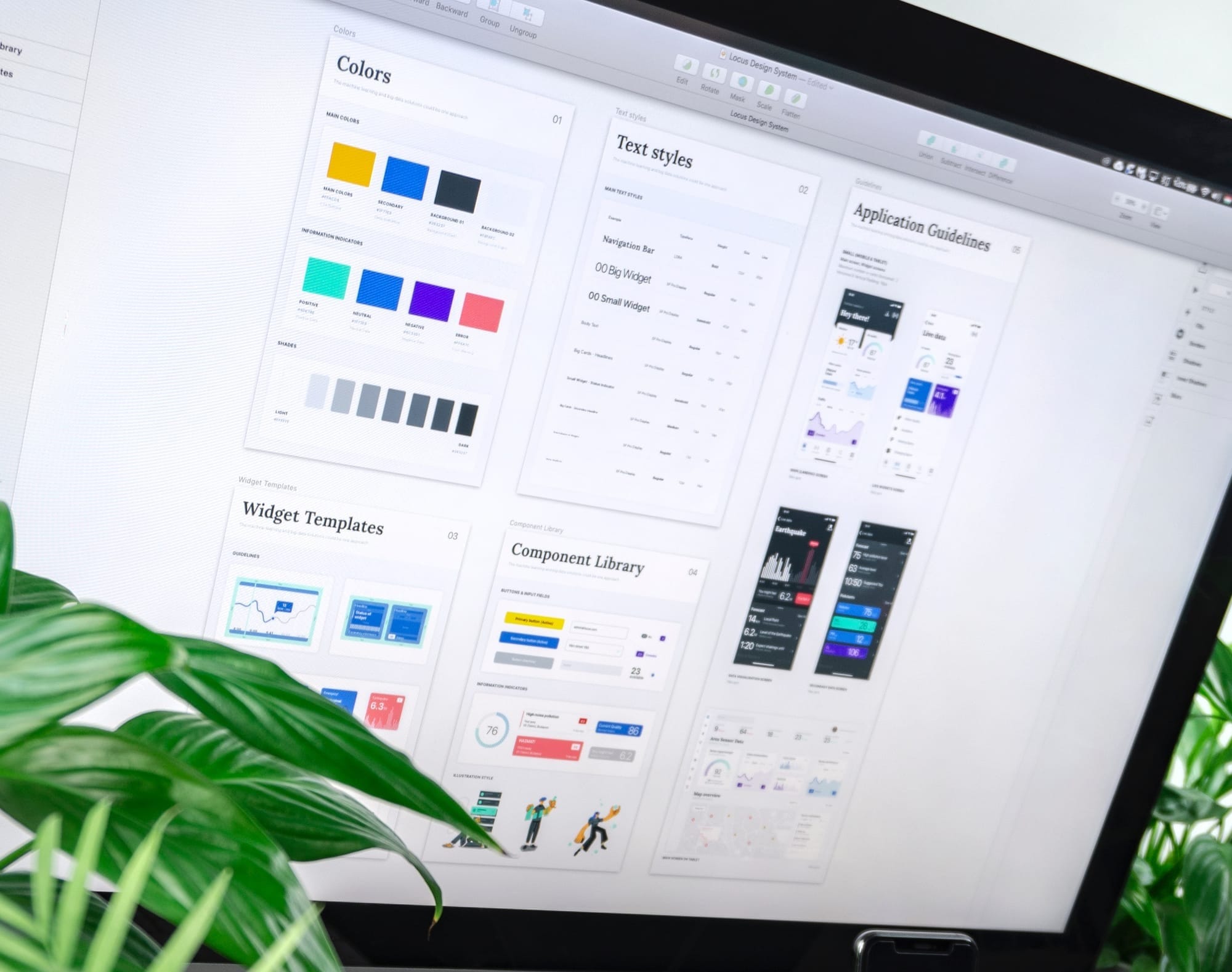 - UI 요소 (웹/앱 디자인): 버튼, 아이콘, 입력란, 그리드 시스템 등 사용자 인터페이스 요소를 정의합니다.
