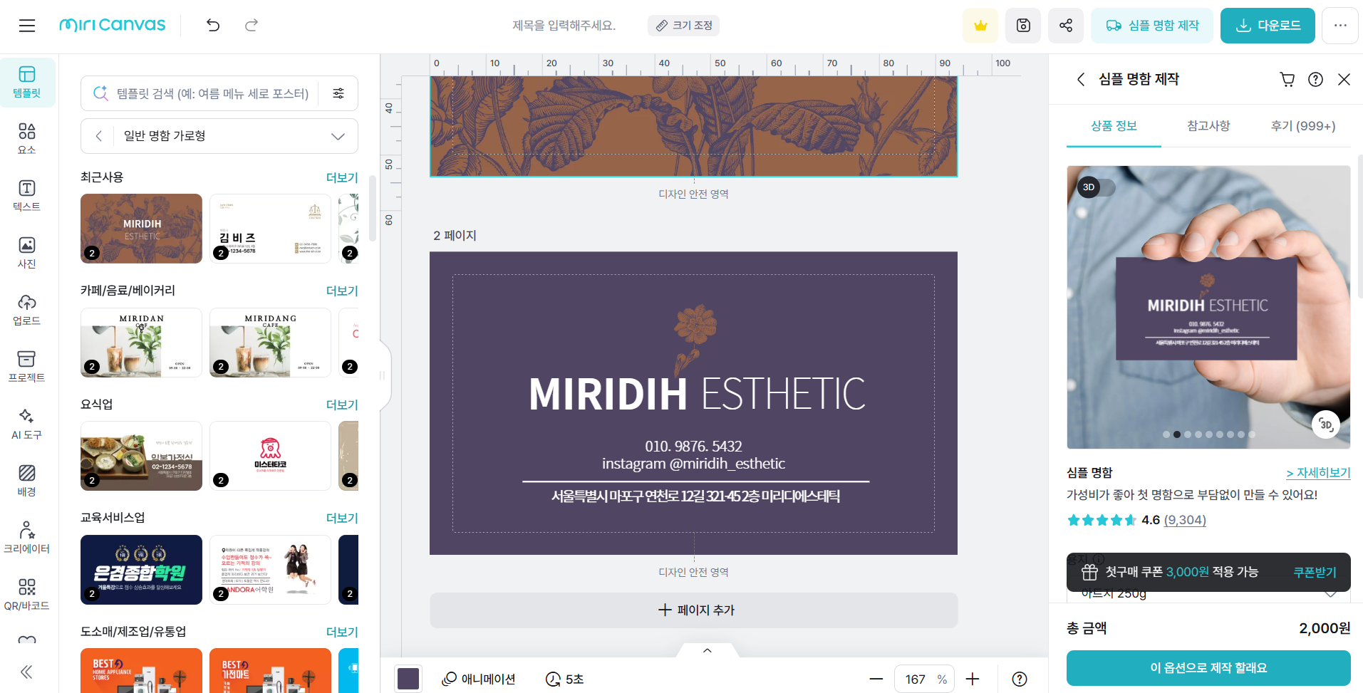- 완성된 디자인을 인쇄용 PDF 형태로 다운로드