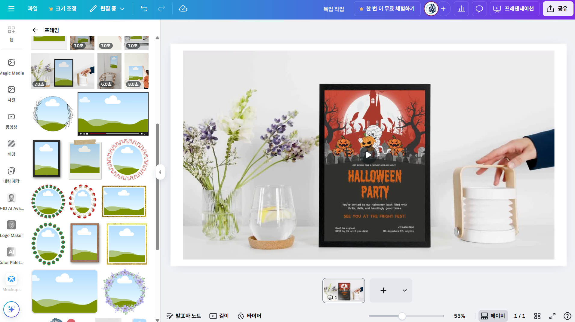 포토샵이나 일러스트레이터가 익숙하지 않은 분들도 걱정하지 마세요. 캔바(Canva), 미리캔버스, 망고보드, 어도비 익스프레스(Adobe Express) 같은 무료 디자인 도구에서도 목업 기능을 지원합니다. 복잡한 과정 없이 누구나 쉽게 전문가처럼 디자인 결과물을 시각화할 수 있습니다.