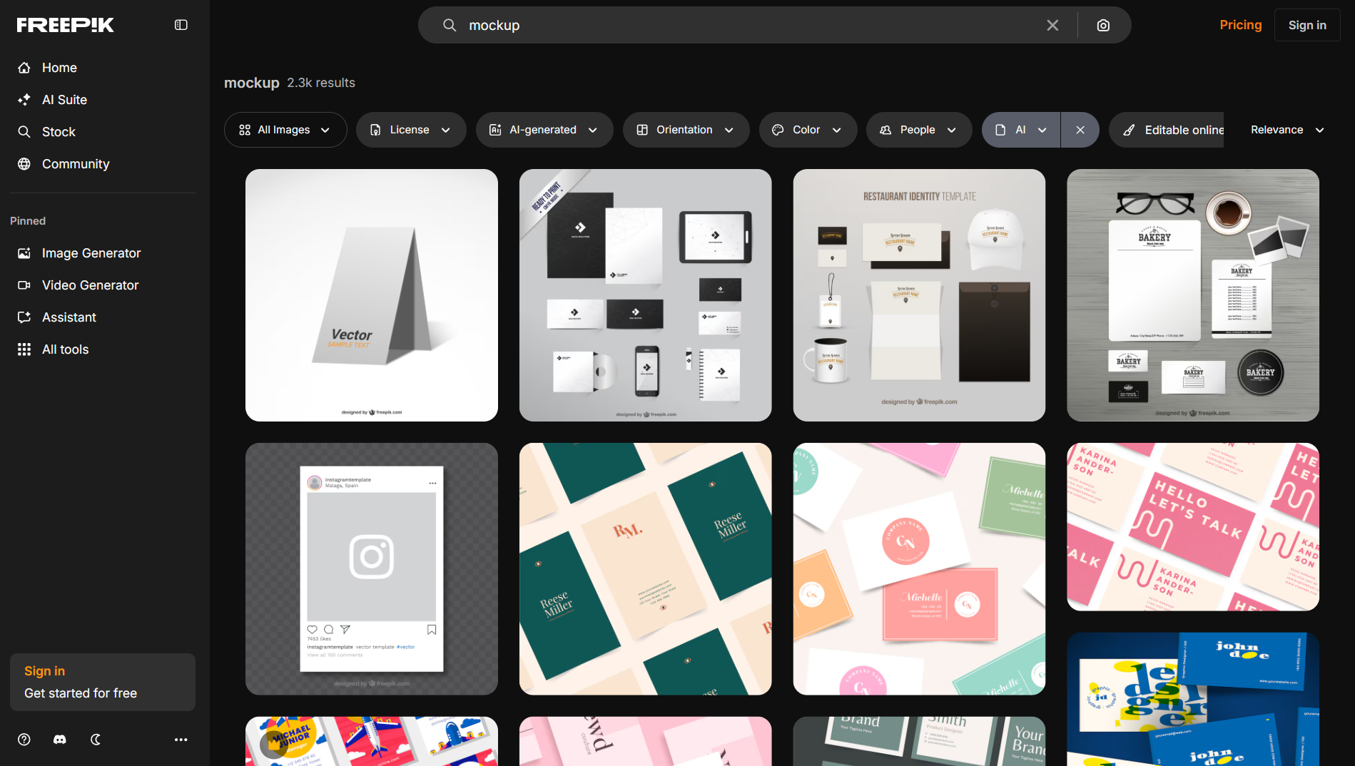 - Freepik : 다양한 스타일의 PSD 목업 템플릿을 제공하며, 원하는 카테고리를 빠르게 찾을 수 있는 검색 기능이 강력합니다.