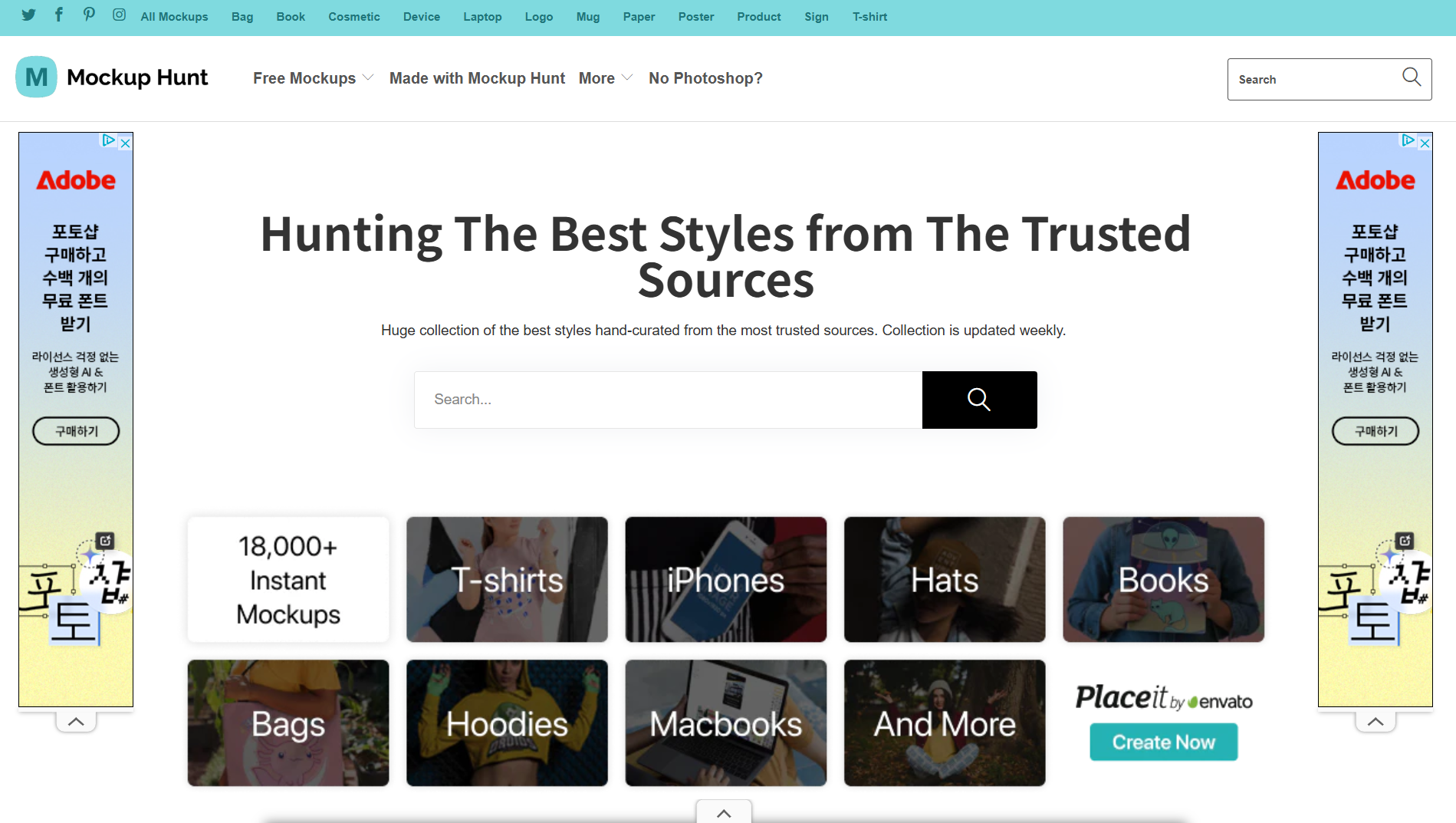 - Mockup Hunt : 매일 업데이트되는 무료 목업을 큐레이션 형태로 소개해 최신 트렌드의 리소스를 쉽게 찾을 수 있습니다.