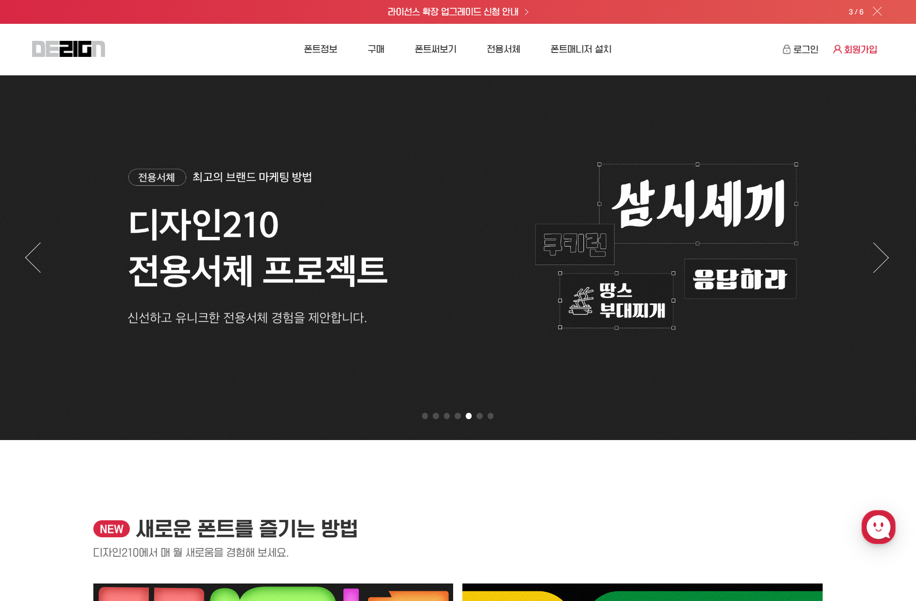 디자인 210 은 사이트에서 구독과 패키지를 구매하도록 배포하고 있습니다. "폰트매니저"라는 프로그램을 설치하면 무료, 유료 글꼴을 설치하고 관리할 수 있습니다.