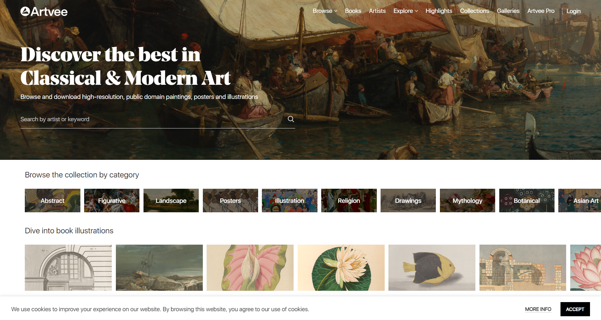 Artvee는 고전 및 현대 미술 작품을 탐색하고 고해상도의 저작권이 만료된 그림, 책, 포스터, 일러스트레이션을 다운로드할 수 있는 독특한 플랫폼입니다. 이 사이트는 추상, 인물, 풍경, 종교, 신화, 동물 등 다양한 카테고리로 분류된 1만 2천여 장의 공공 도메인 예술작품 이미지를 제공합니다. 세계적으로 유명한 미술관과 갤러리의 작품들을 포함하여, 고전적인 예술 작품부터 현대 예술에 이르기까지 다양한 장르와 시대의 예술 작품들을 망라하고 있어, 외젠 들라크루와, 자크 루이 다비드, 알폰스 무하 등 유명 예술가들의 작품을 찾아볼 수 있습니다. 카테고리에서 작품을 찾거나 예술가의 이름과 키워드로 검색하여 원하는 작품을 쉽게 찾을 수 있습니다. 모든 서비스는 상업적 사용이 가능하도록 무료로 제공됩니다.
