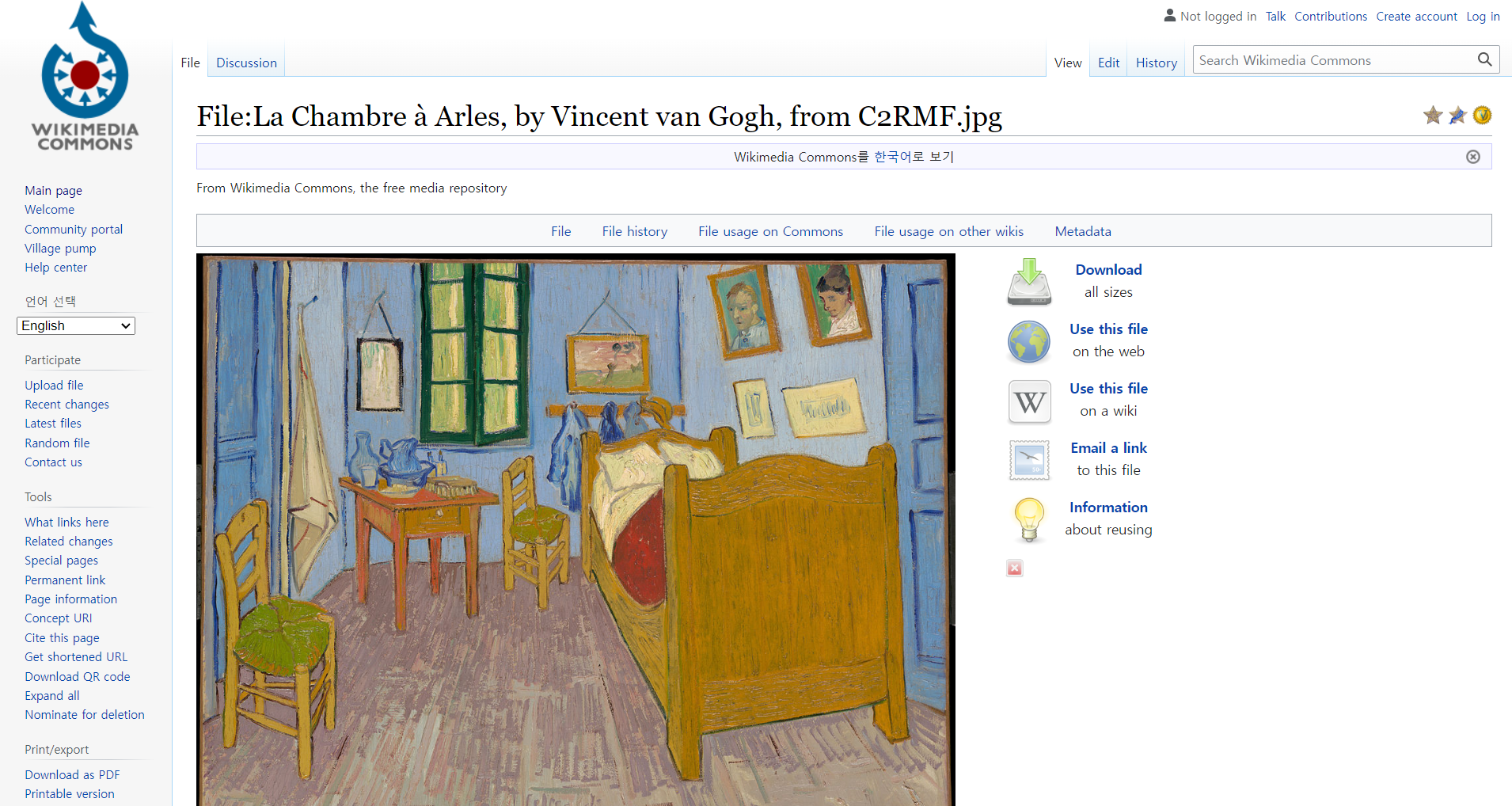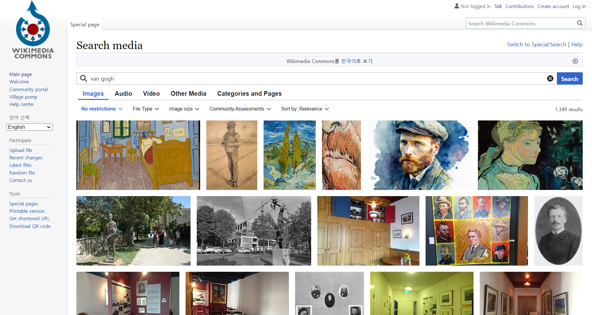 Wikimedia Commons 는 저작권에서 자유로운 고해상도 이미지, 소리파일, 영상파일 등을 저장하고 공유하는 글로벌 저장소입니다. 이 플랫폼은 위키미디어 재단의 프로젝트 중 하나로, 사용자들이 자유롭게 미디어 파일을 업로드하고, 위키백과, 위키책, 위키뉴스 등 다른 위키미디어 프로젝트에서도 해당 파일들을 사용할 수 있게 합니다. 2004년에 시작된 이 프로젝트는 파일의 중복 업로드를 방지하고, 자유로운 지식의 공유를 촉진하기 위해 만들어졌으며, GNU 자유 문서 사용 허가서, 일부 크리에이티브 커먼즈 라이선스, 공공누리 제1유형 라이선스, 퍼블릭 도메인 등 다양한 라이선스 하에 있는 자료들이 업로드 되어 있습니다. Wikimedia Commons 는 미국과 해당 저작물이 만들어지거나 위치한 출처 국가에서 모두 자유 저작물인 경우에만 업로드가 가능하며, 이는 국가별 저작권법의 차이를 고려한 조치입니다. 검색창에서 필터는 No restrictions 로 설정하고 작품명, 작가명으로 검색하여 이미지를 찾을 수 있습니다.