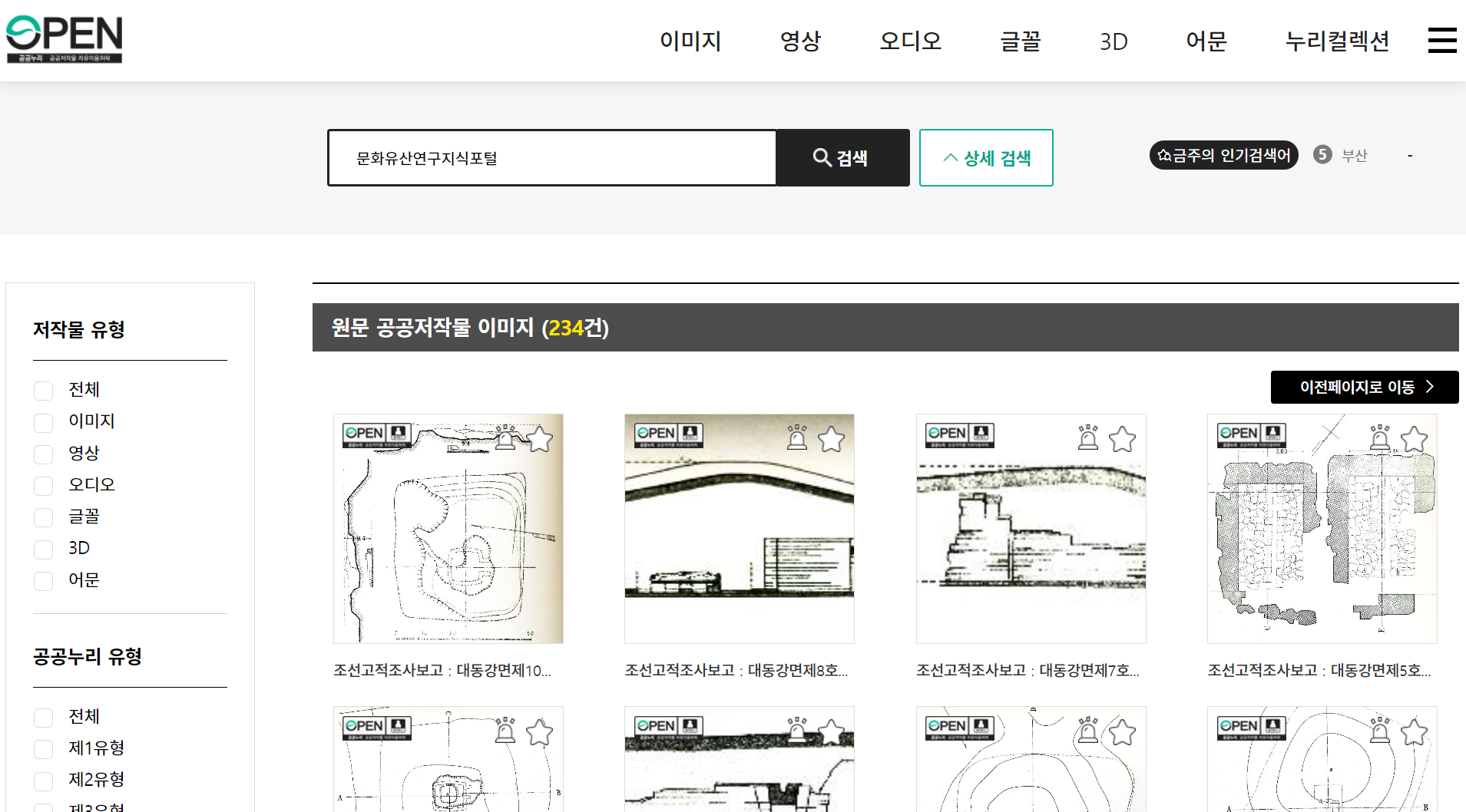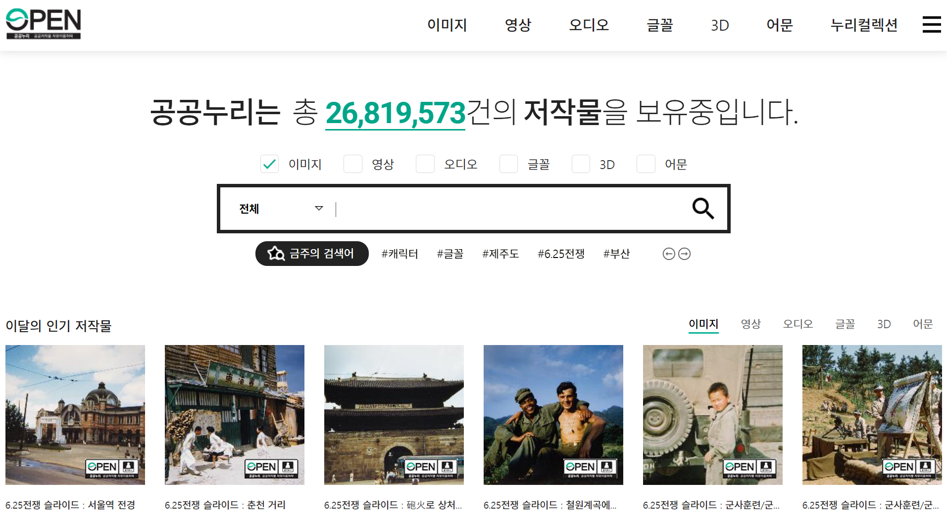 공공누리는 사진을 구할 수 있는 사이트로 앞에서 소개드린 적이 있습니다. 이 사이트는 우리나라 국가기관, 지방자치단체, 공공기관이 창작한 다양한 저작물을 국민 누구나 자유롭게 이용할 수 있도록 개방하는 서비스입니다. 이 플랫폼은 이미지, 영상, 오디오, 글꼴, 3D 모델, 문서 등의 공공저작물을 포함하며, 이들은 교육, 연구, 창작 활동 등 다양한 목적으로 활용될 수 있습니다. 공공누리의 자료는 저작물별로 적용된 유형별 이용조건에 따라 저작권 침해의 부담 없이 무료로 이용 가능합니다. 이미지 항목에서 이용조건을 필터를 적용하여 키워드로 검색할 수 있습니다. 저작권 만료 저작물은 자유롭게 이용이 가능하고 제1유형 저작권은 출처를 표시하면 상업적, 비상업적 이용이 가능합니다.