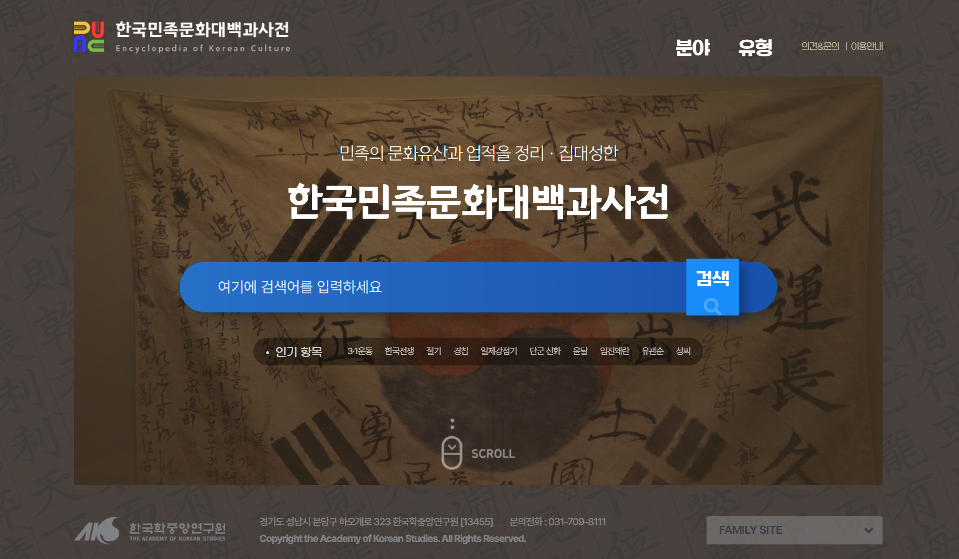 한국민족문화대백과사전 콘텐츠 이용안내