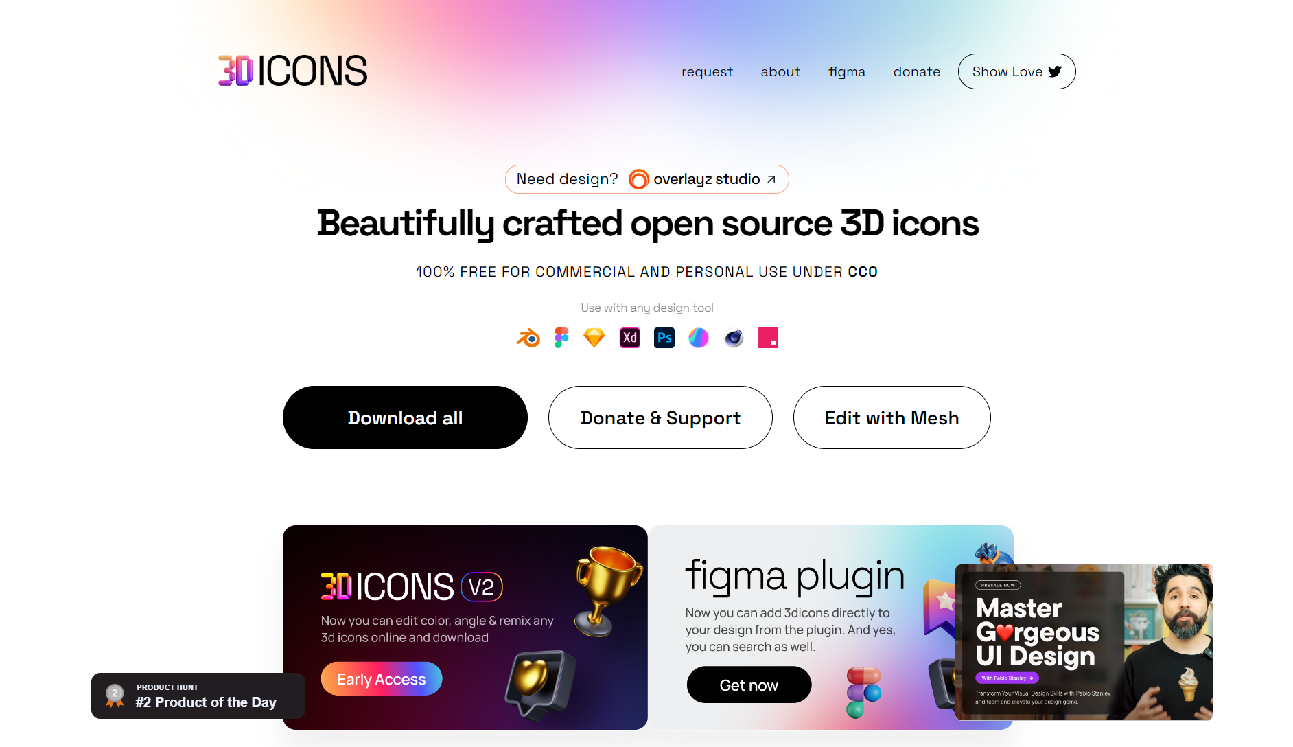 3Dicons는 블렌더에서 제작된 오픈소스 3D 아이콘 세트를 제공합니다. 개인 및 상업 프로젝트에 무료로 사용할 수 있으며, 편집, 리믹스, 공유 및 재구성이 가능합니다. 이 사이트는 다양한 디자인 도구와 호환되며, 클레이, 그라데이션, 컬러 등 4가지 사전 정의된 색상 스타일을 제공합니다. 3Dicons는 1440개 이상의 3D 아이콘을 포함하고 있습니다. 128px 과 72px 의 저해상도 이미지는 무료로 다운로드할 수 있습니다.