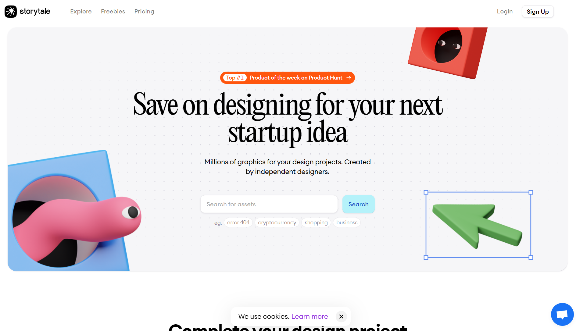 Storytale은 프리미엄 품질의 벡터 및 3D 그래픽을 제공합니다. 독립 디자이너들에 의해 만들어진 수백만 개의 그래픽 자산을 사용하여 디자인 프로젝트를 완성할 수 있습니다. 이 사이트는 매주 새로운 스타일의 자산이 추가되는 거대한 라이브러리를 연간 구독으로 제공하며, 상업적 및 개인 프로젝트에 자유롭게 사용할 수 있는 다양한 3D 모델과 일러스트레이션을 포함하고 있습니다. Freebies 항목에서 무료로 제공되는 요소를 다운로드할 수 있습니다.