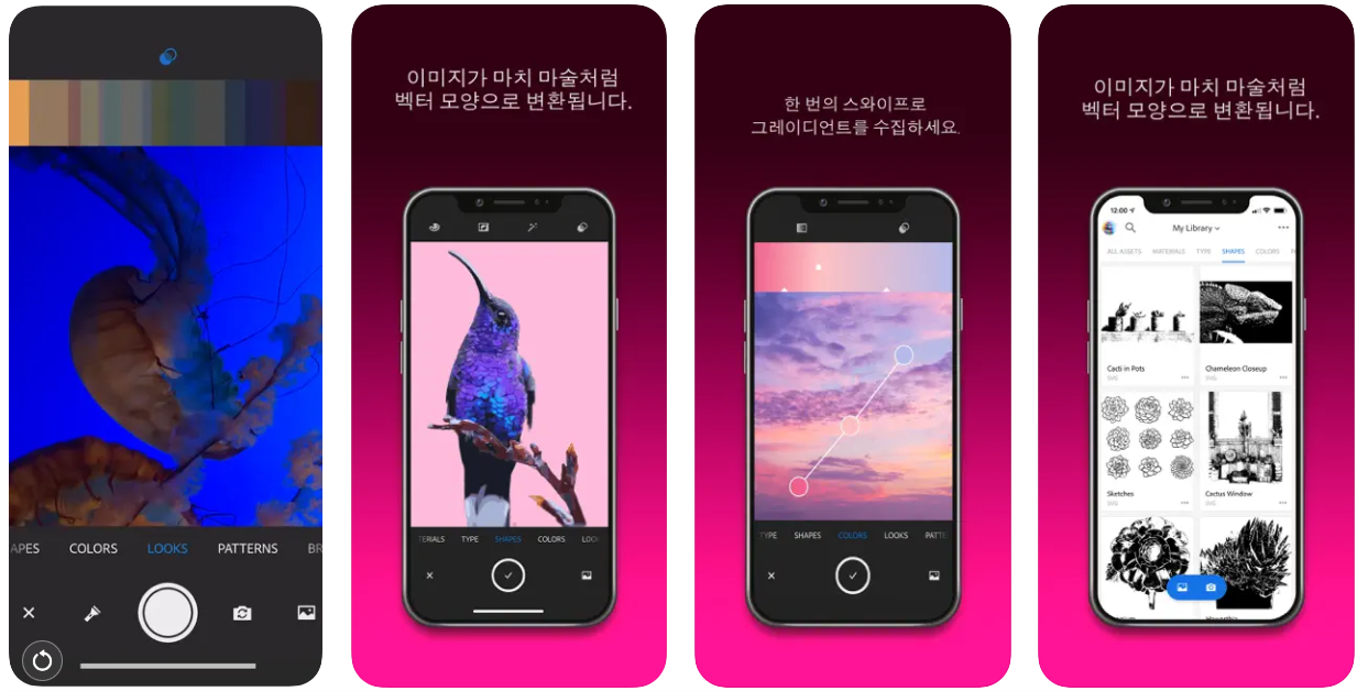 가격: 무료 (Creative Cloud 월 46,860원) | OS: iOS | 한글 지원: 인터페이스 - 완전 한글화 / 한글 폰트 - Creative Cloud 폰트 지원