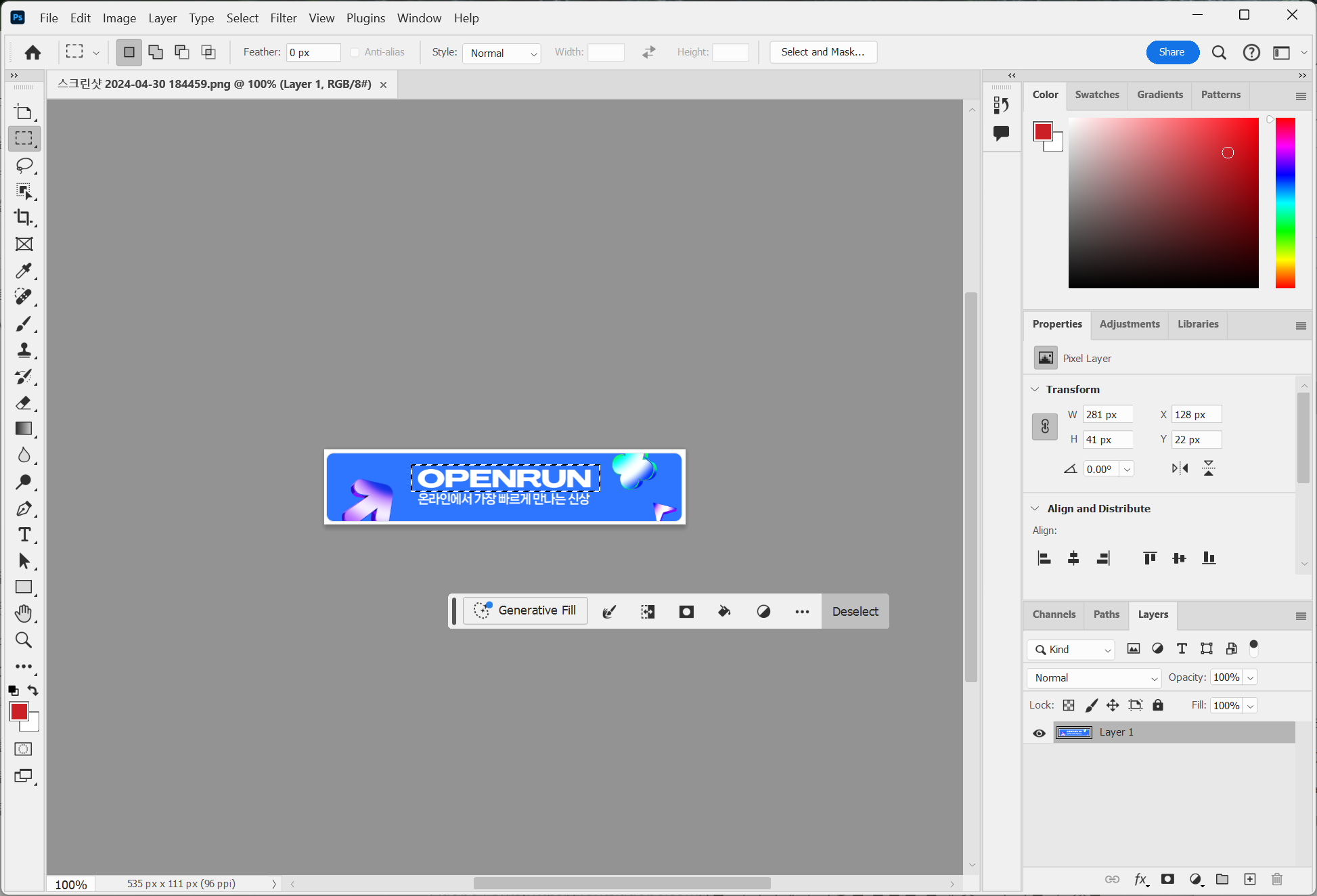 - '사각형 선택 도구(Rectangular Marquee Tool)'를 사용하여 글꼴을 식별하고 싶은 텍스트 부분을 선택합니다. 텍스트가 잘 보이도록 충분한 영역을 선택합니다.