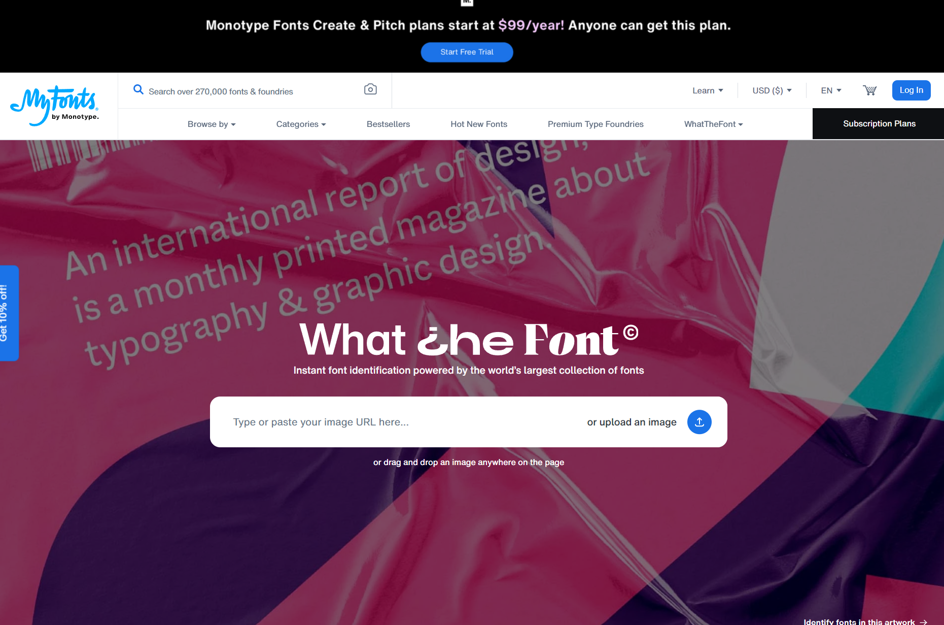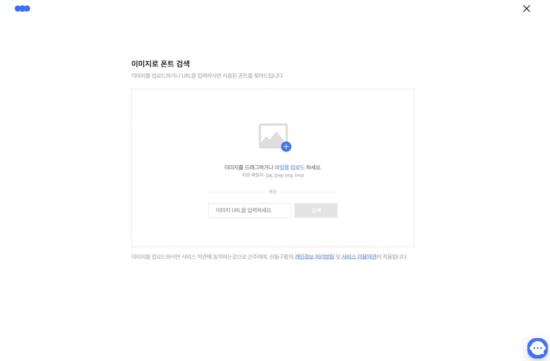 - WhatTheFont 사이트에 접속하여 검색창에 이미지를 업로드하거나 이미지의 URL 경로를 입력합니다.