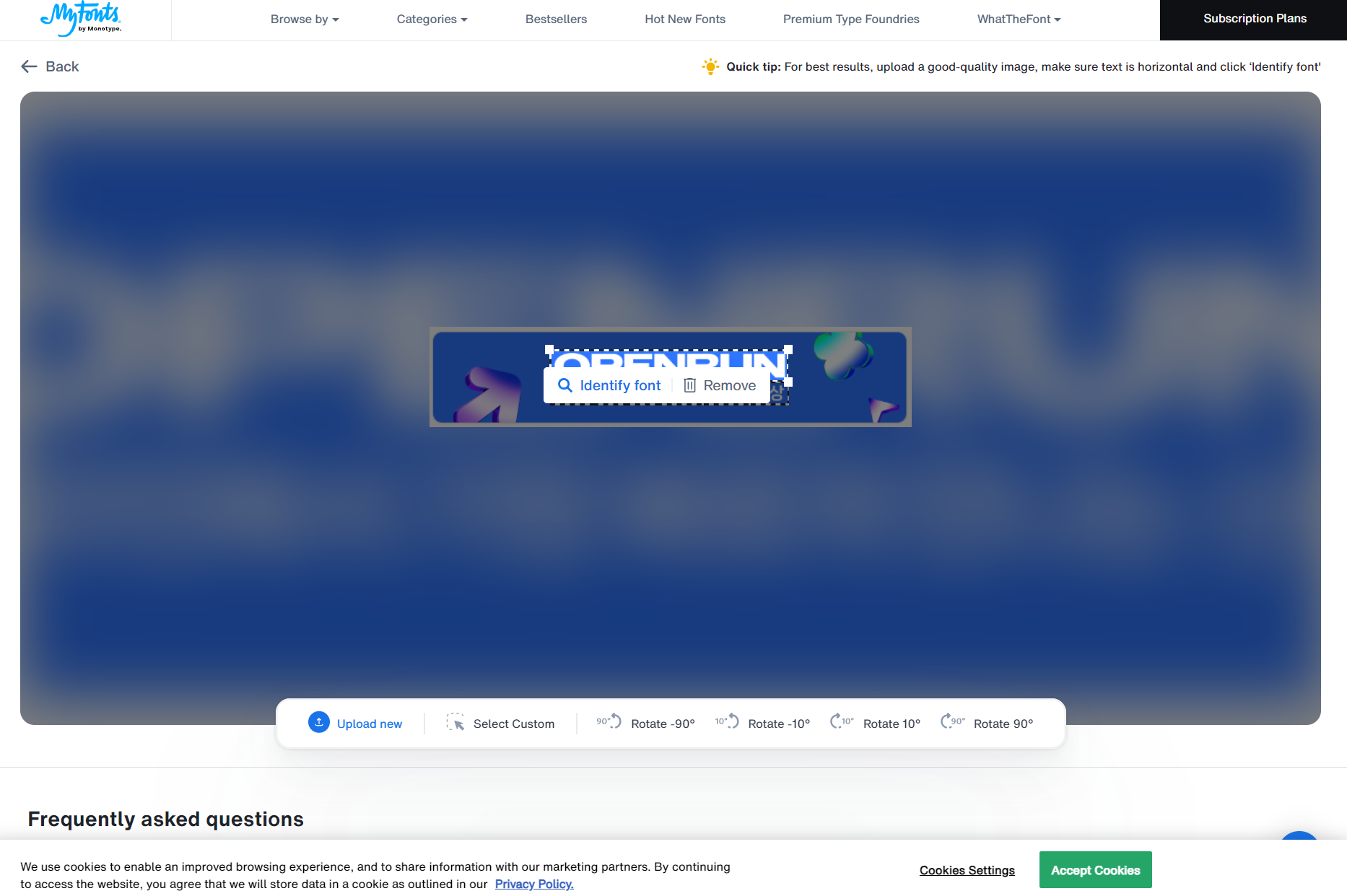 - 검색할 이미지 영역을 지정하고 'Identify font' 를 클릭하여 영문글꼴 검색 결과를 확인합니다.