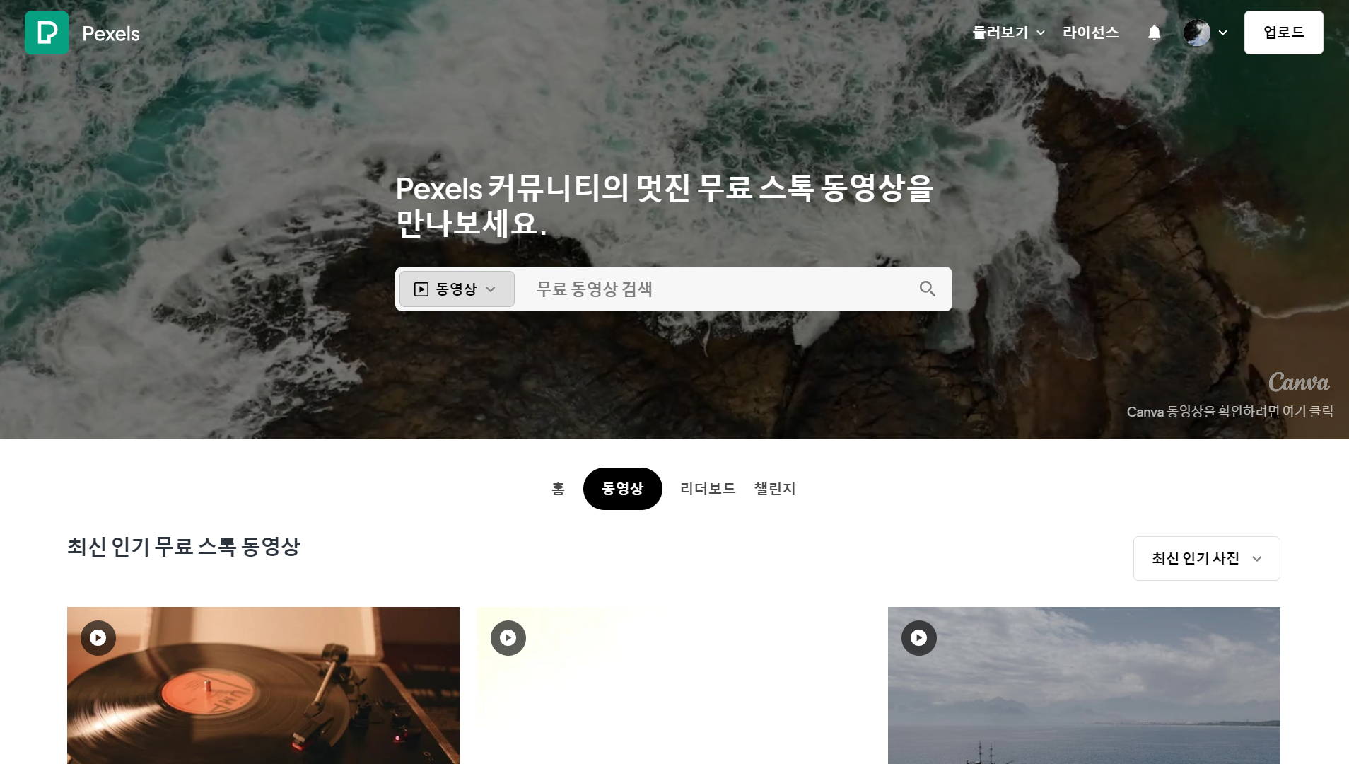 Pexels는 무료 스톡 사이트로 한글을 지원합니다. 무료 사진 사이트로 시작했지만, 이후 대규모의 무료 HD 및 4K 스톡 비디오 라이브러리를 추가하며 광범위한 컬렉션을 자랑합니다. Pexels의 영상 소스는 사이트의 라이선스에 따라 Creative Commons Zero(CC0)로 제공되어, 개인적 또는 상업적 용도로 사용할 수 있으며 마음대로 편집하고 수정할 수 있습니다. 영상은 수평, 수직, 정사각형 등 다양한 방향으로 분류되어 있어, 선택한 영상에 따라 추가 수정을 생략할 수 있는 편리함을 제공합니다. 제공되는 파일 확장자는 주로 MP4 형식이며, 해상도는 4K, Full HD, HD 등 다양하게 제공되어 사용자의 필요에 맞게 선택할 수 있습니다. 타임랩스 영상이나 고프로로 촬영한 영상, 목업(mockup) 영상 등 다양한 용도의 영상이 제공되지만, 대부분의 영상이 1분 미만입니다. Pexels에서 제공하는 동영상은 저작권 걱정 없이 사용할 수 있으나, 원본을 존중하고 기본 매너로 출처를 명시하는 것이 좋습니다.