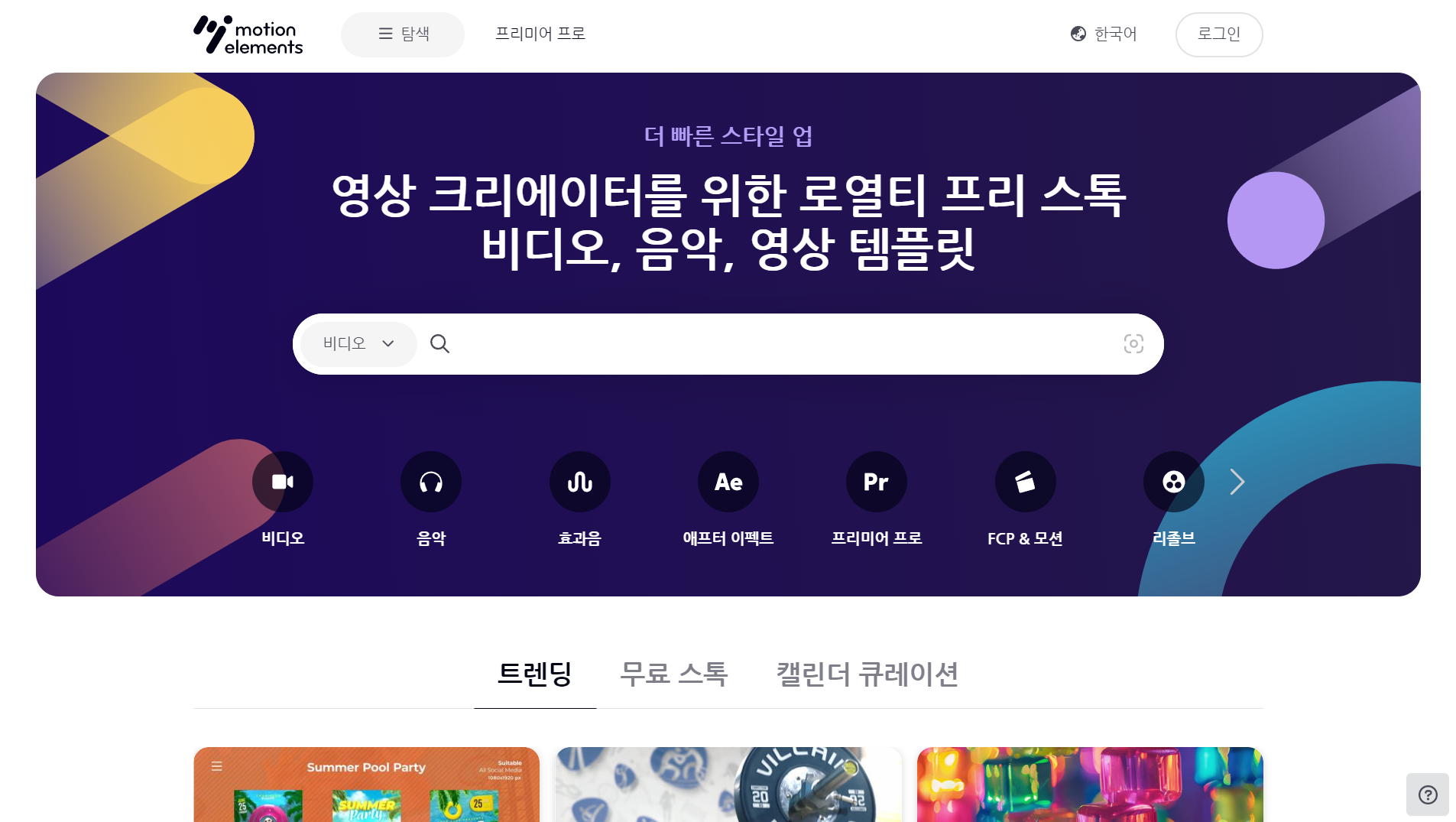 MotionElements는 다양한 미디어 콘텐츠를 제공하는 플랫폼으로, 최신 트렌드를 꾸준히 반영하여 매주 새로운 무료 콘텐츠를 업데이트하며 한글도 지원합니다. 비디오 외에도 무료 음악, 3D 모델, Adobe After Effects, Apple 템플릿 등을 다운로드할 수 있습니다. 무료 스톡 탭을 선택하면 무료로 동영상 소스를 이용할 수 있으며, MP4와 MOV 등의 다양한 파일 확장자와 다양한 해상도 옵션을 통해 프로젝트에 적합한 영상을 찾을 수 있습니다. 또한, 사용자가 영상을 효과적으로 활용할 수 있도록 상세한 사용법과 튜토리얼을 제공하여 초보자부터 전문가까지 폭넓게 지원합니다. 매주 최대 5개의 무료 스톡 비디오를 다운로드할 수 있으며, 친구를 초대하면 추가 다운로드 혜택을 받을 수 있는 프로모션도 진행하고 있습니다.