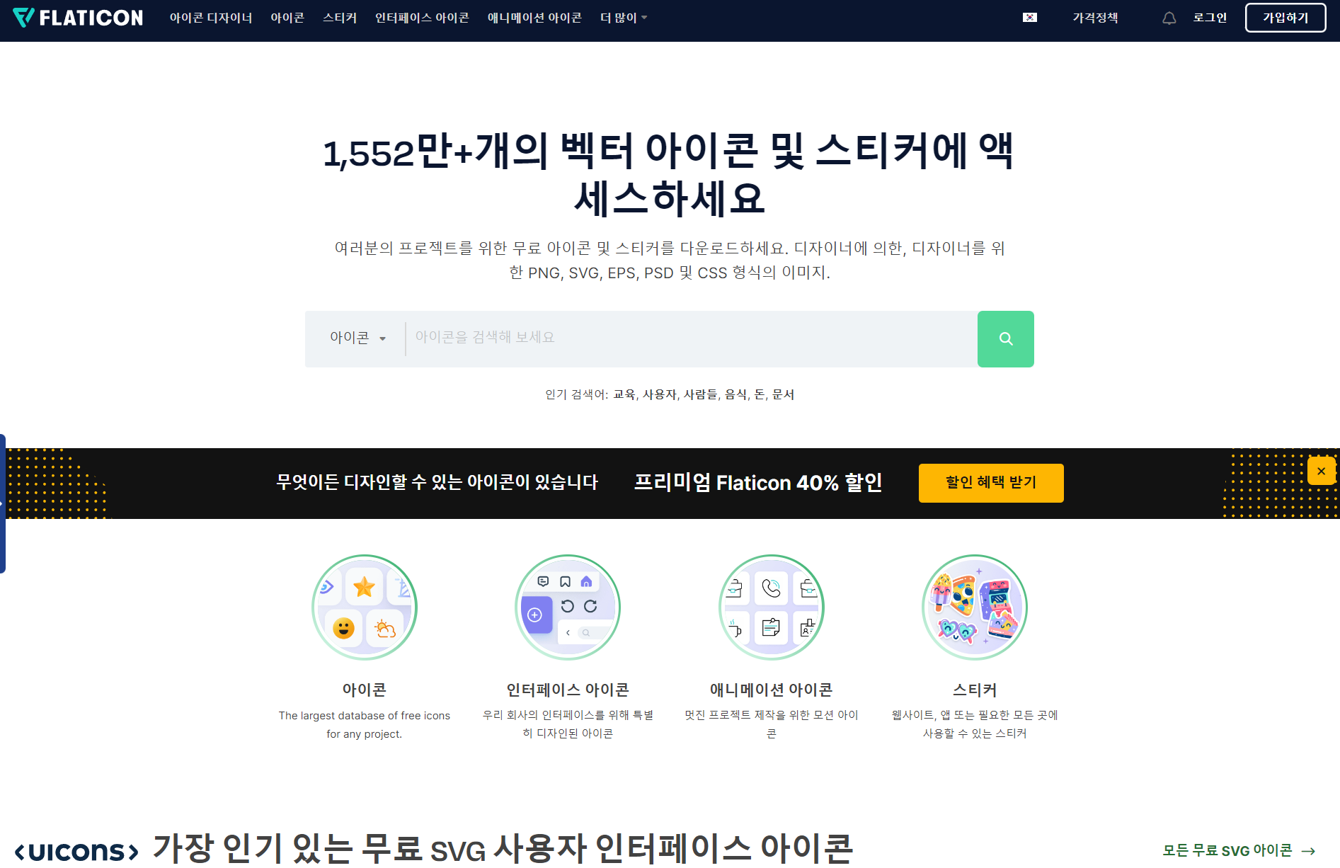 디자인 작업에서 사진이나 벡터 일러스트 이상으로 유용하고 자주 쓰이는 디자인 요소가 바로 아이콘입니다. 디자인 작업 시 목적에 맞는 아이콘을 만들어 사용하는 것이 가장 좋겠지만 매번 직접 만들어 사용 하기는 어려운데요. 시간은 절약하고, 주목도 높은 디자인을 완성할 수 있는 방법으로 무료 사이트를 이용해볼 수 있겠습니다. 미리캔버스나 캔바에서도 아이콘을 구할 수 있지만 원하는 것을 찾기 어려울 때는 이런 사이트들을 활용해보시면 좋겠습니다.