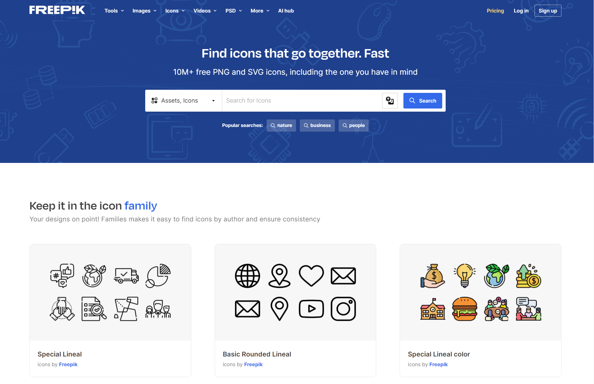 Flaticon은 웹사이트, 앱 또는 필요한 모든 곳에 사용할 수 있는 스티커를 포함하여 다양한 프로젝트를 지원하는 1,470만 개가 넘는 무료 아이콘 데이터베이스를 가지고 있습니다. 아이콘을 윤곽선, 그라데이션, 손그림 등의 버전으로 선택하고 PNG, SVG, EPS, PSD 를 비롯하여 CSS 형식으로 다운로드 받을 수 있습니다. 사용자가 아이콘의 색을 편집하고 사이즈를 변경하여 다운로드할 수 있는 편집기도 제공합니다. 한국어 지원이 되므로 언어 설정을 통해 이 사이트를 쉽게 이용할 수 있습니다. 무료 아이콘을 상업적으로 사용 시 저작권 표시를 해야합니다. Google Workspace와 호환되어 Google Docs와 파워포인트에서 아이콘을 간편하게 무료로 사용할 수 있습니다.