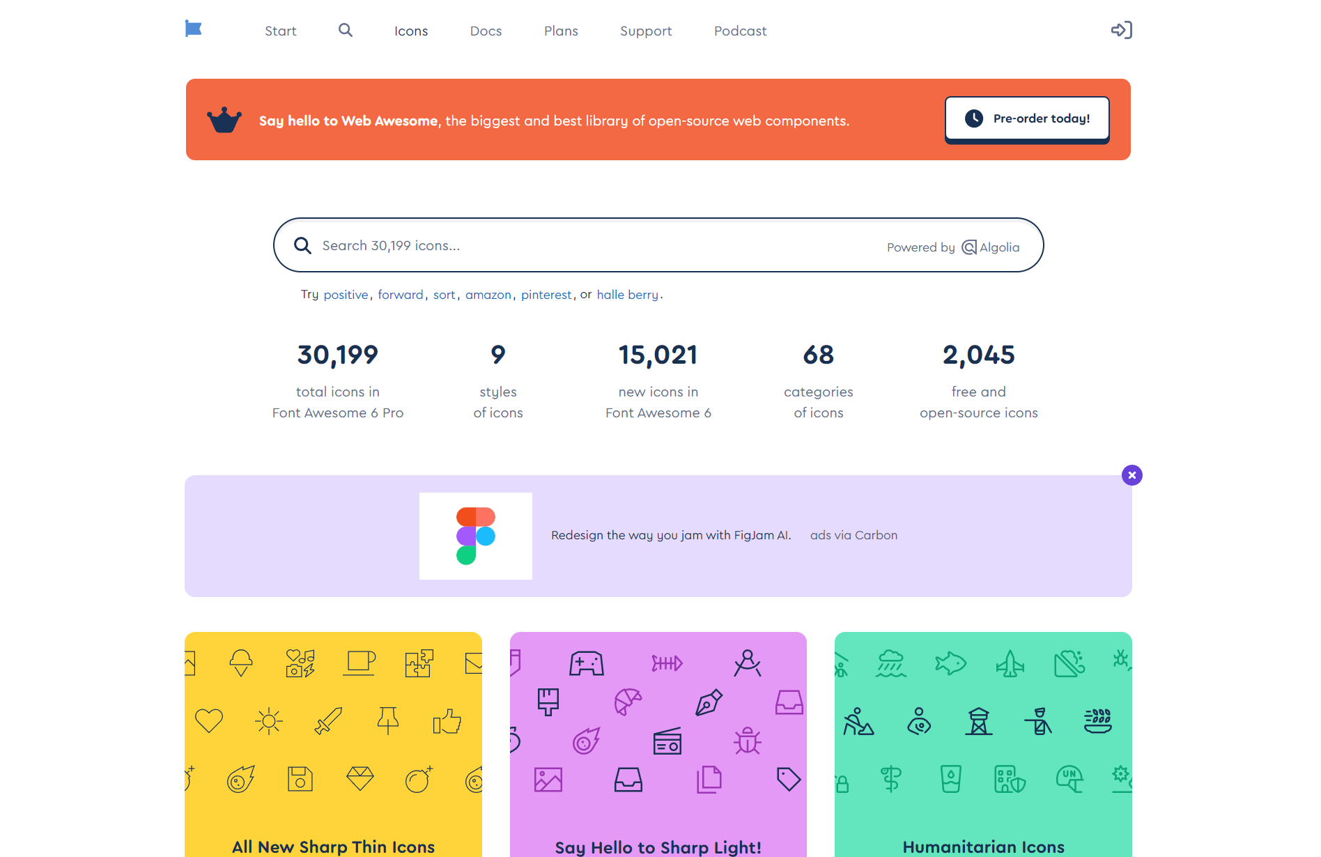 Font Awesome은 인터넷의 아이콘 라이브러리 및 툴킷으로, 웹 관련 작업을 위한 픽토그래픽 언어를 제공하며, CSS를 이용하면 아이콘의 크기, 색상, 드롭 섀도 등을 즉시 사용자 정의할 수 있습니다. 사용자는 코드 한 줄로 30,000개 이상의 아이콘을 사용할 수 있으며 자신만의 아이콘, 로고, 심지어 다른 아이콘 세트를 추가하여 Font Awesome을 확장할 수 있습니다. 무료 사용 가능 버전과 상업용 버전이 있습니다. 무료 사용 버전은 자유롭게 사용 가능하지만 저작권을 확인하고 사용하시는 것을 추천합니다.