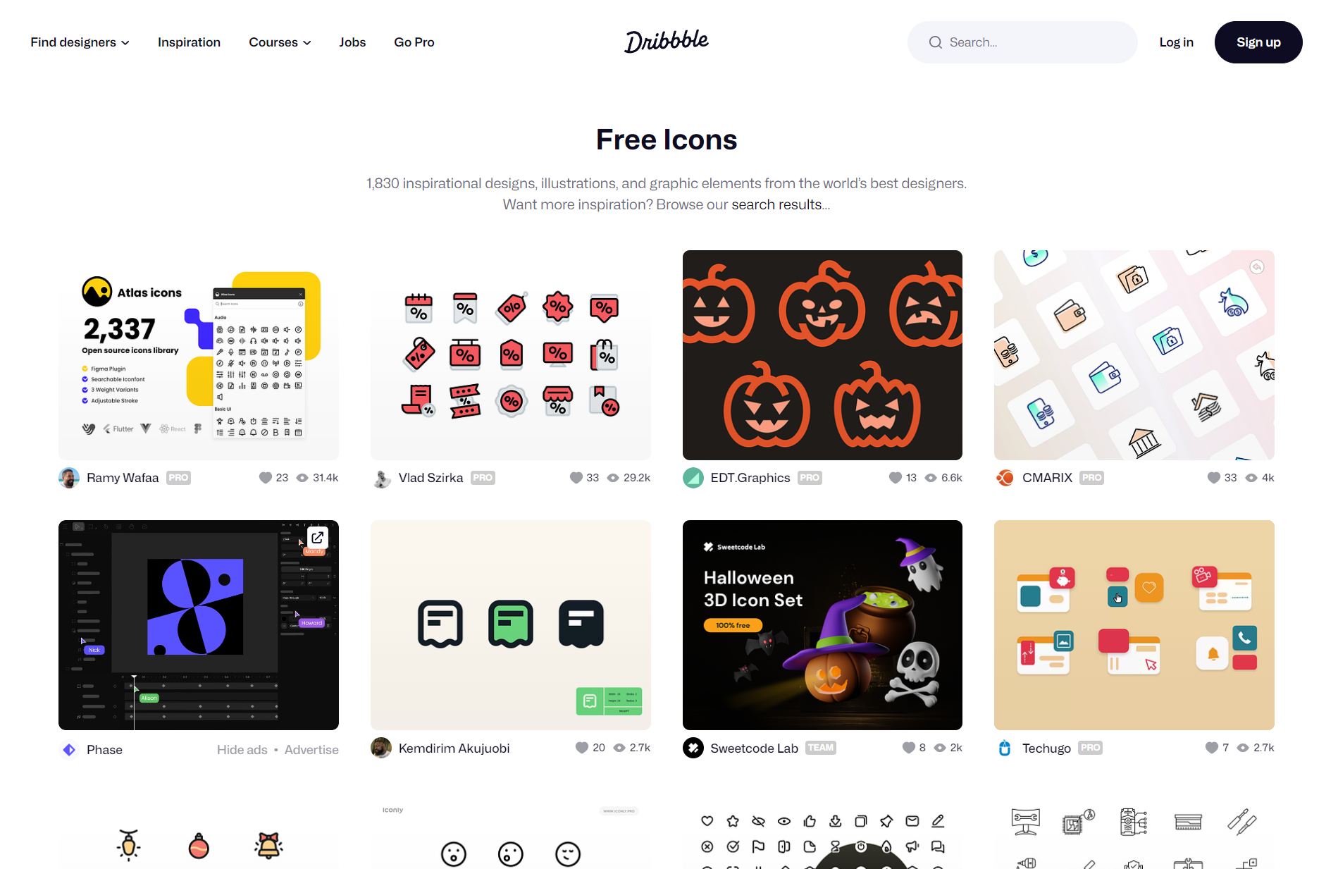 Dribble은 디자이너를 위한 소셜 네트워크 플랫폼입니다. Dribbble의 'Free Icons' 섹션은 전 세계 디자이너들이 만든 수천 가지의 아이콘 디자인을 무료로 제공하는 곳입니다. 사용자는 다양한 테마와 스타일의 아이콘을 찾아볼 수 있습니다. 또한, Dribbble은 디자이너들이 자신의 작업을 전시하고 다른 디자이너들과 연결될 수 있는 창의적인 커뮤니티를 형성하고 있습니다. 이곳에서는 개인적인 프로젝트나 상업적인 작업에 사용할 수 있는 다양한 아이콘을 발견할 수 있으며, 디자인에 대한 새로운 관점을 얻을 수 있습니다.