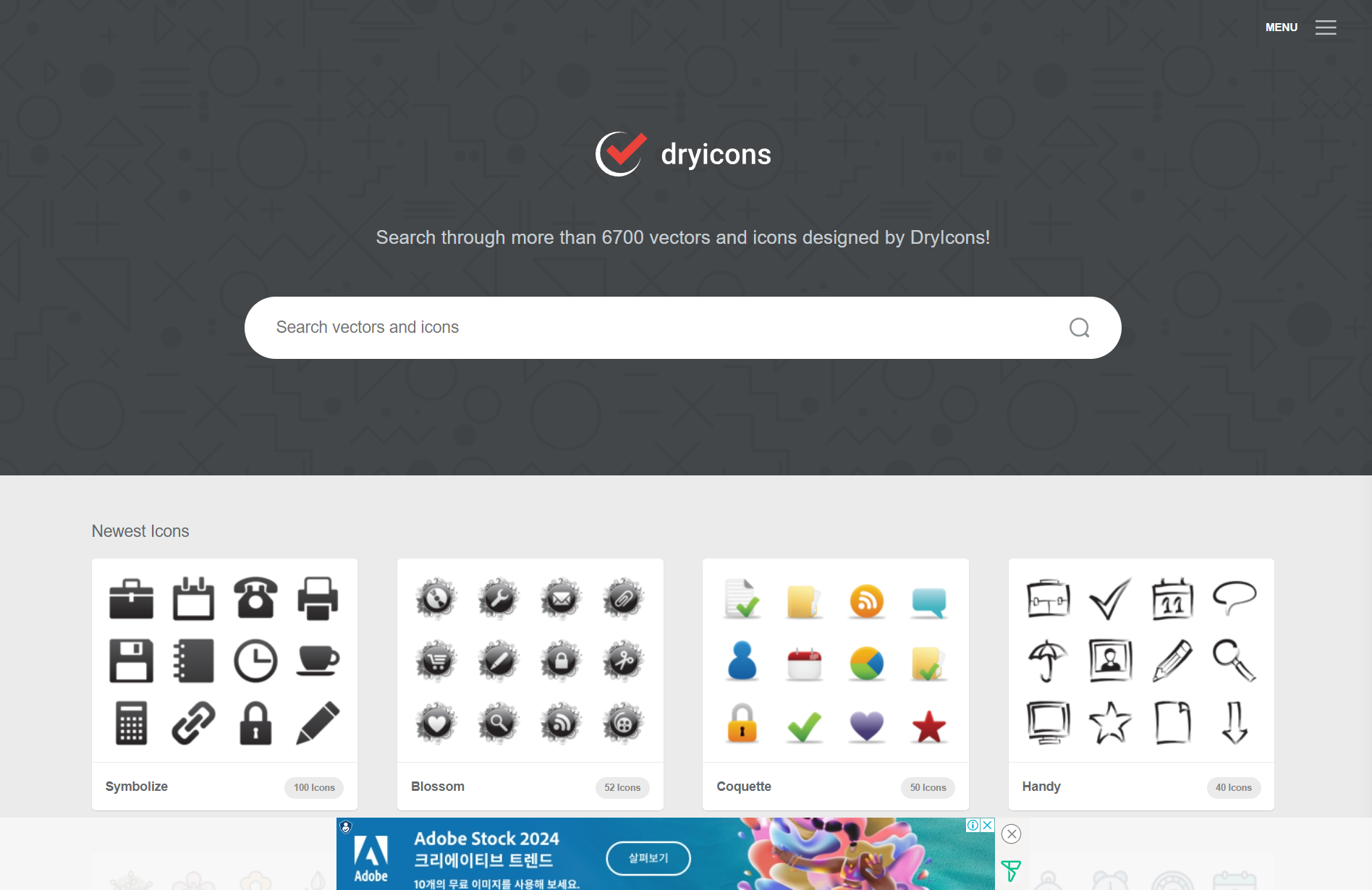 Dryicons는 6,700개 이상의 다양한 웹 및 벡터 아이콘을 SVG로 다운로드 할 수 있습니다. 이 사이트는 독특한 아이콘과 아이콘 세트, 벡터 그래픽 및 웹 템플릿을 만들어 무료 라이선스로 제공하며, 독립적인 개발자, 소규모 디자인 회사 및 조직에 우선권을 부여합니다. 사용자는 77개의 아이콘 세트에서 5000개 이상의 고품질 아이콘과 1700개 이상의 벡터 그래픽을 찾아볼 수 있으며,아이콘 팩 페이지에서 하나의 아이콘 팩 전체를 다운로드하거나, 필터를 사용해서 원하는 특정 종류만 다운로드할 수 있습니다.