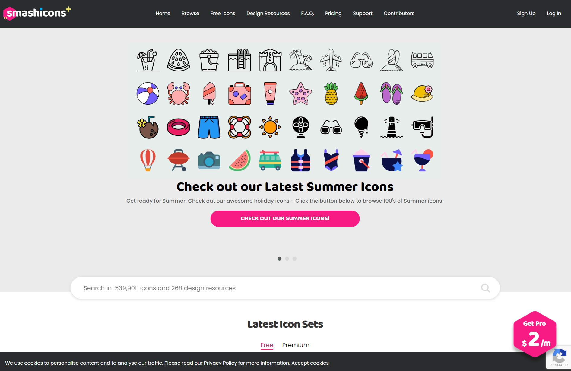 Smashicons는 다양한 디자인 프로젝트에 사용할 수 있는 고품질 벡터 아이콘, 일러스트레이션, UI 키트를 제공하는 웹사이트입니다. 아기자기하고 귀여운 느낌의 아이콘을 찾을 수 있으며, PNG, SVG, XD, AI 등의 형식을 지원합니다. 하나의 아이콘을 네 가지 다른 스타일로 선택할 수 있고, 슬라이더 바를 이용하면 24x24 ~ 256x256px 중 원하는 사이즈를 선택하여 다운로드 할 수 있습니다. 매달 약 5,000개의 아이콘이 업데이트되므로 다양한 구성을 활용할 수 있어 선택의 폭이 넓습니다.