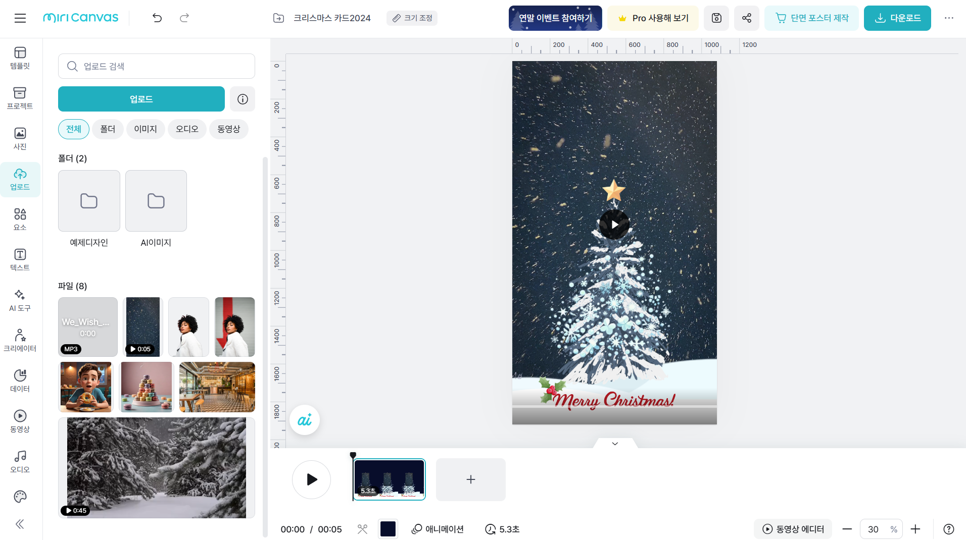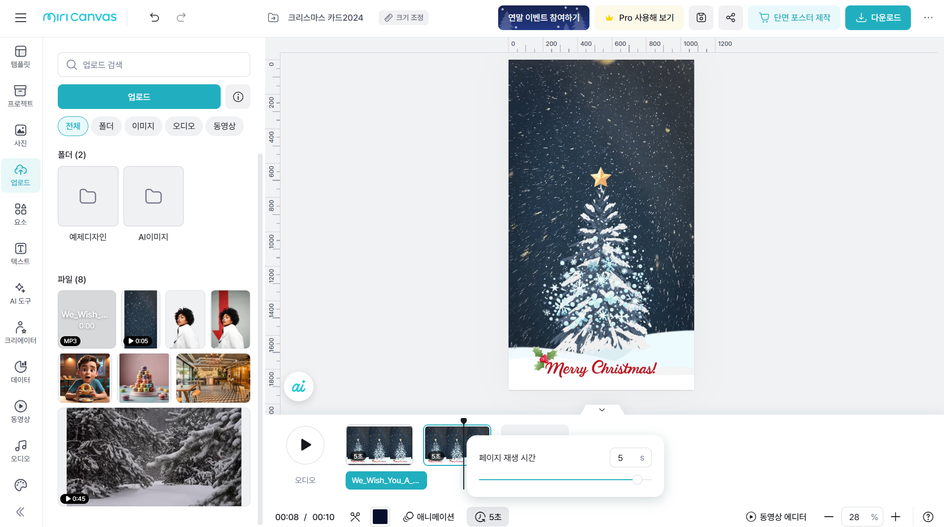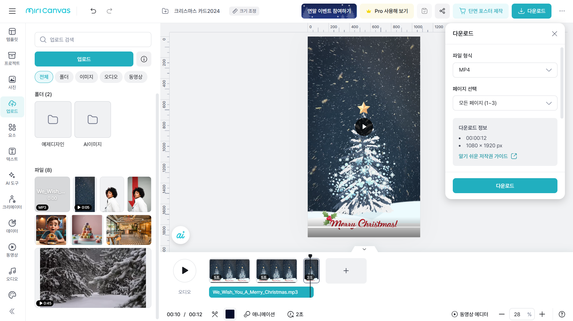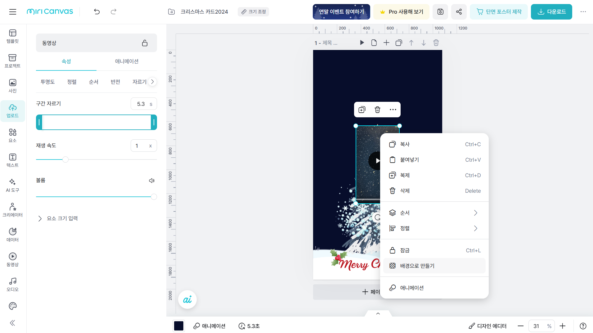 미리캔버스에서 크리스마스 카드 동영상 만들기