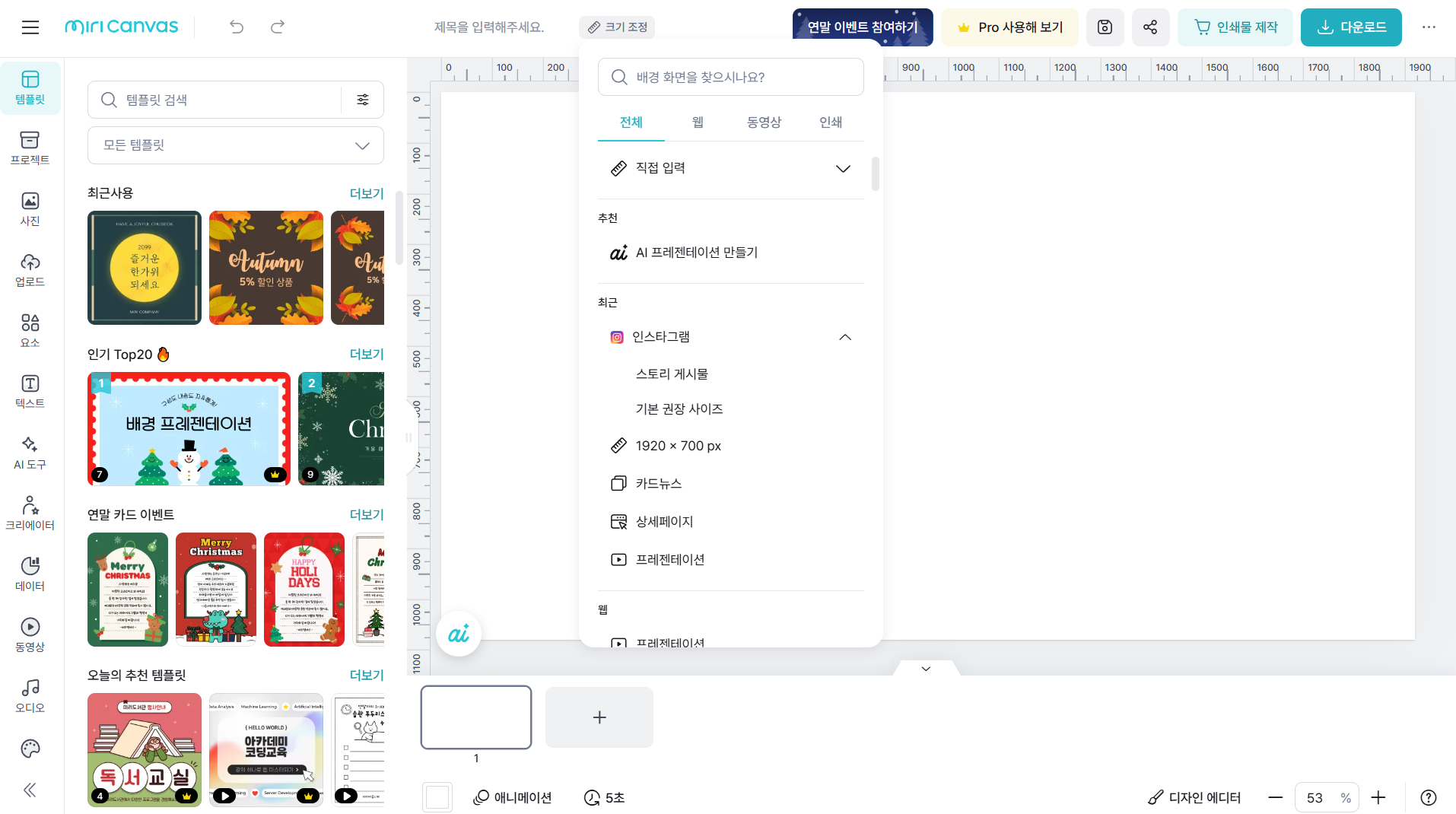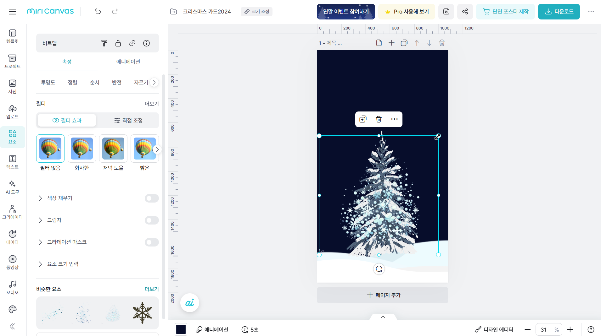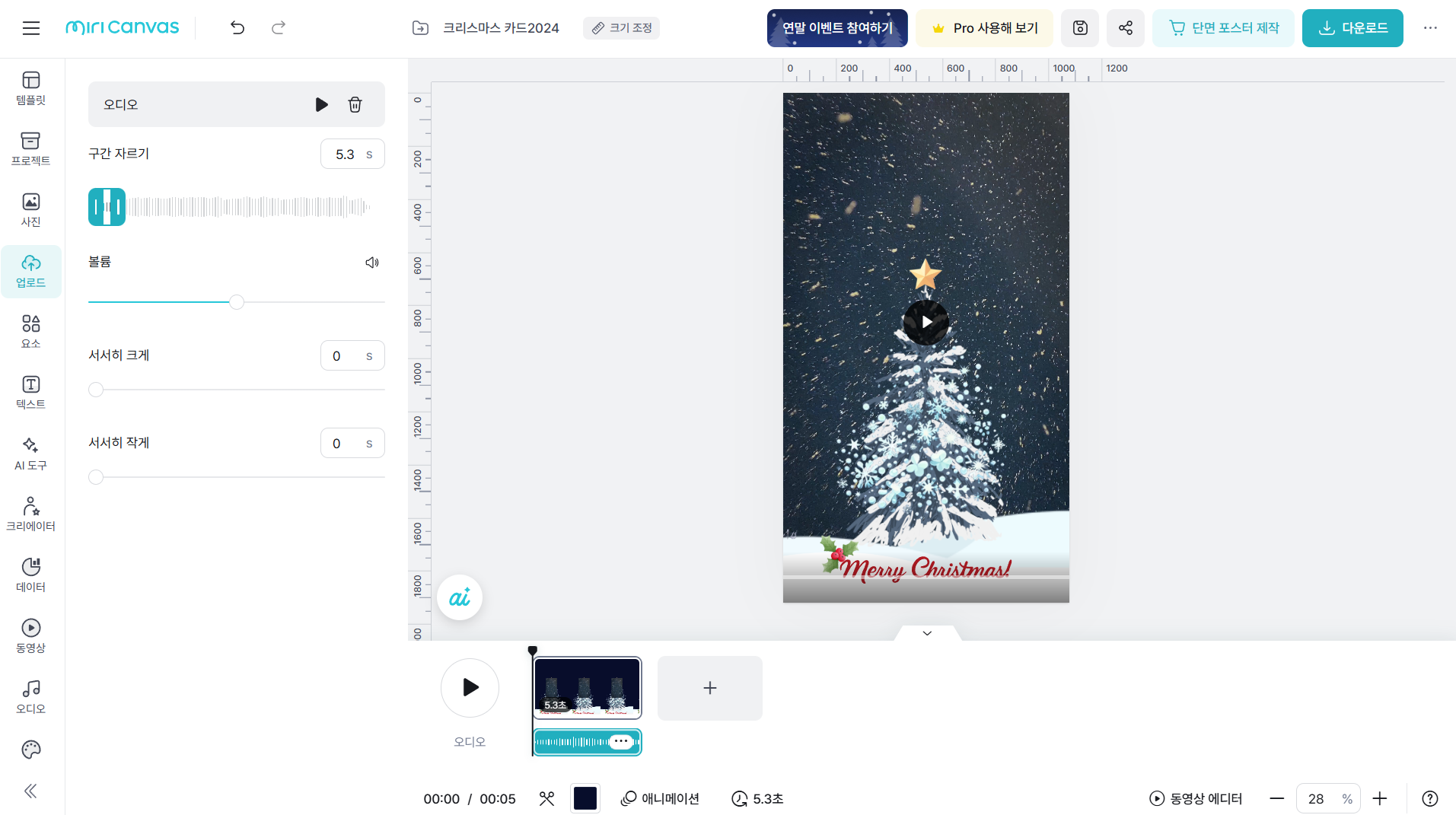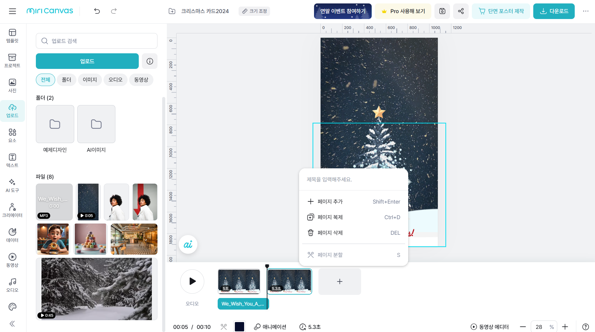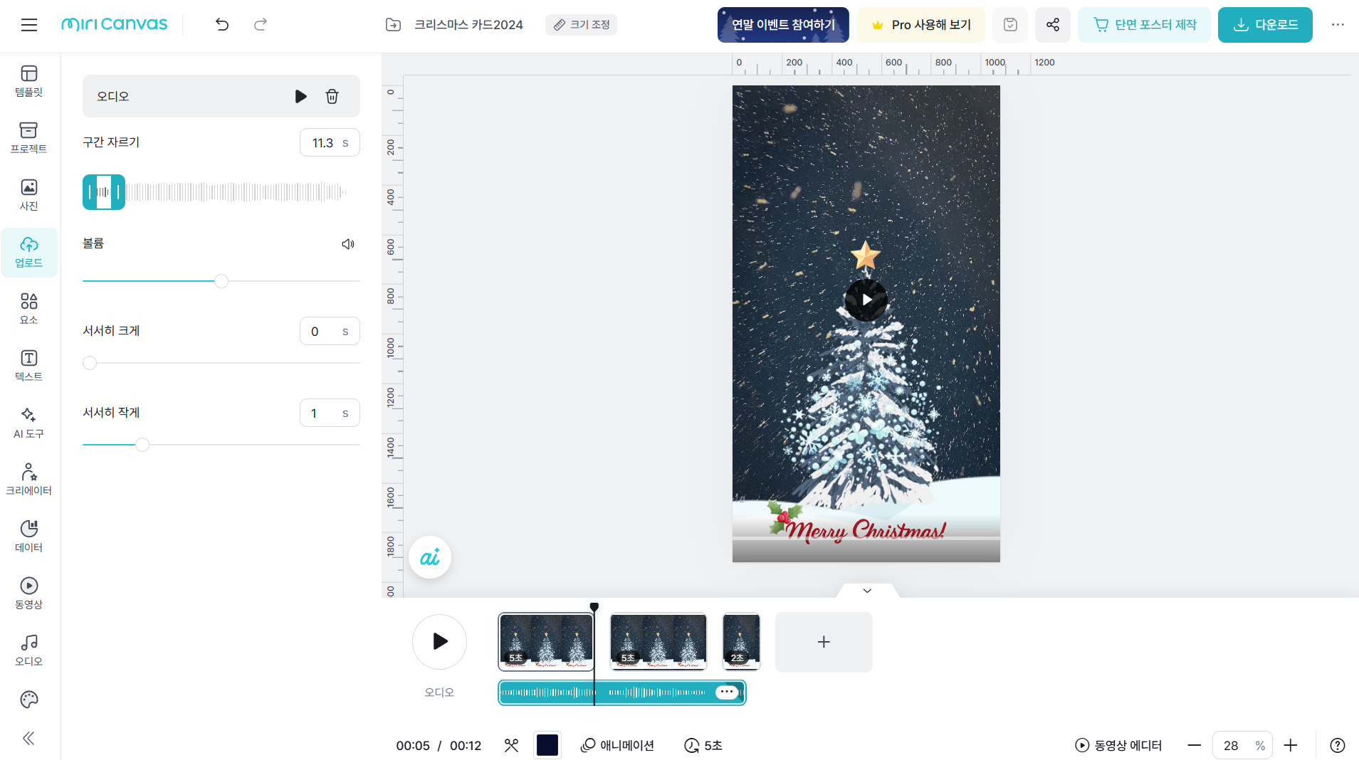 미리캔버스에서 크리스마스 카드 동영상 만들기
