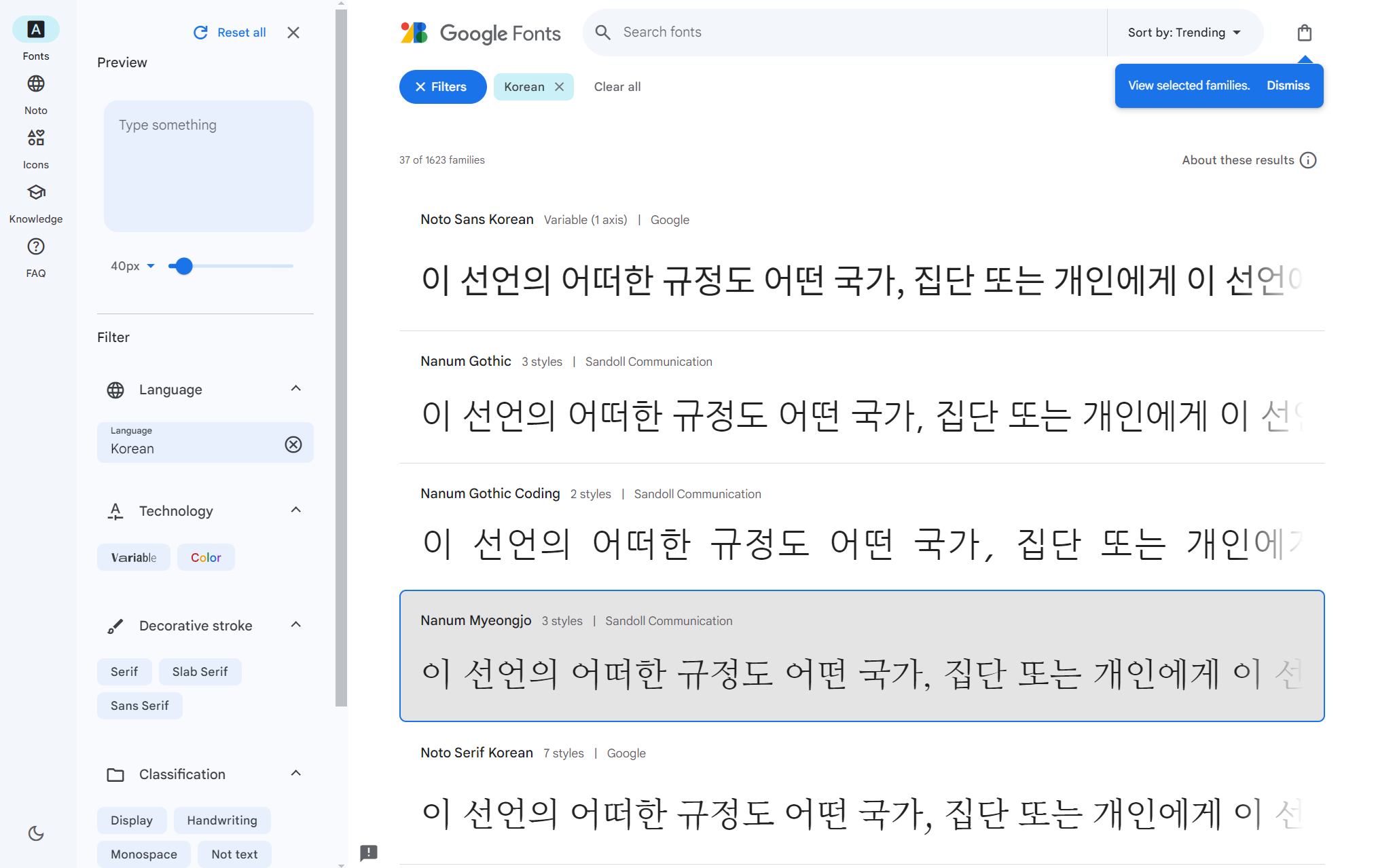 2.구글 폰트 https://fonts.google.com/?subset=korean¬o.script=Kore
