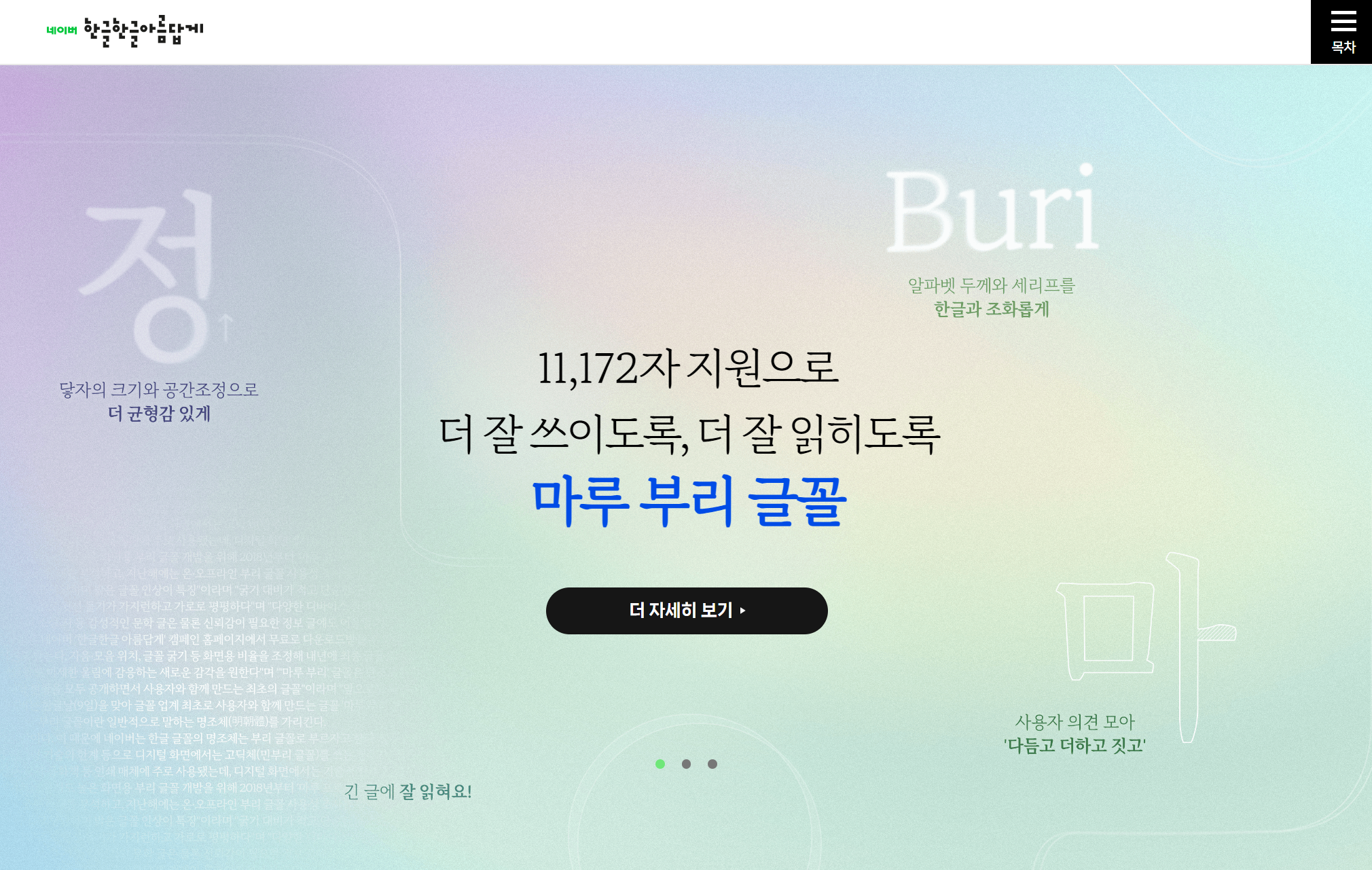 네이버에서 개발하여 배포하는 무료 글꼴 사이트입니다. 나눔 글꼴 34종, 마루부리 글꼴 5종, 클로바 나눔 손글씨 109 종이 배포되고 있습니다.