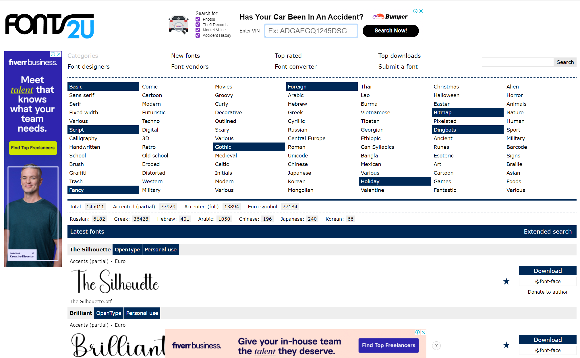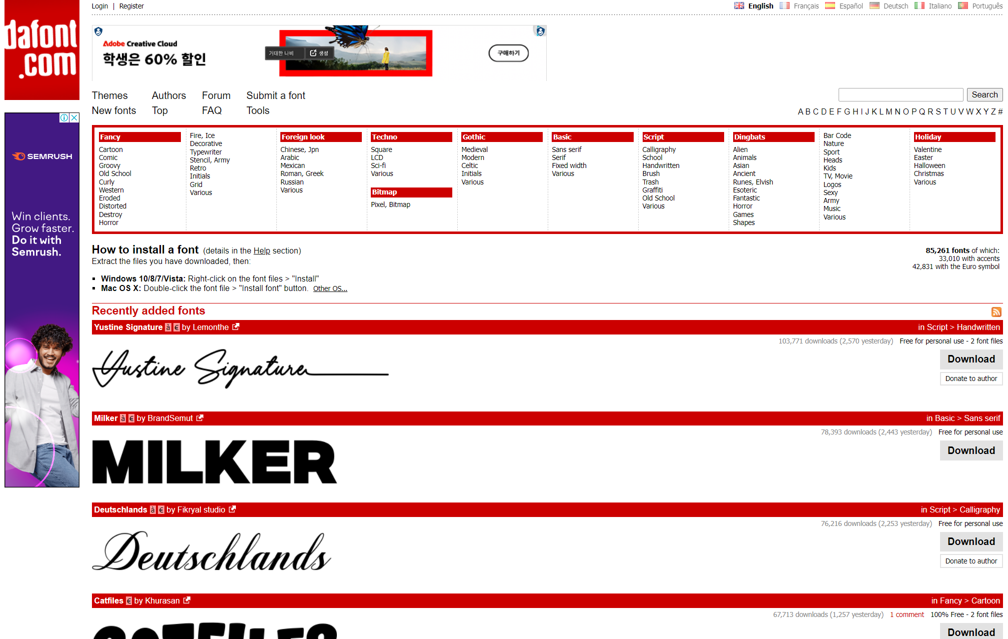 Font2U 도 영문 글꼴 사이트입니다. 영문 글꼴 사이트이므로 한글 글꼴은 제공하지 않습니다. 다양한 영문 글꼴들 카테고리별로 잘 정리되어 있습니다.