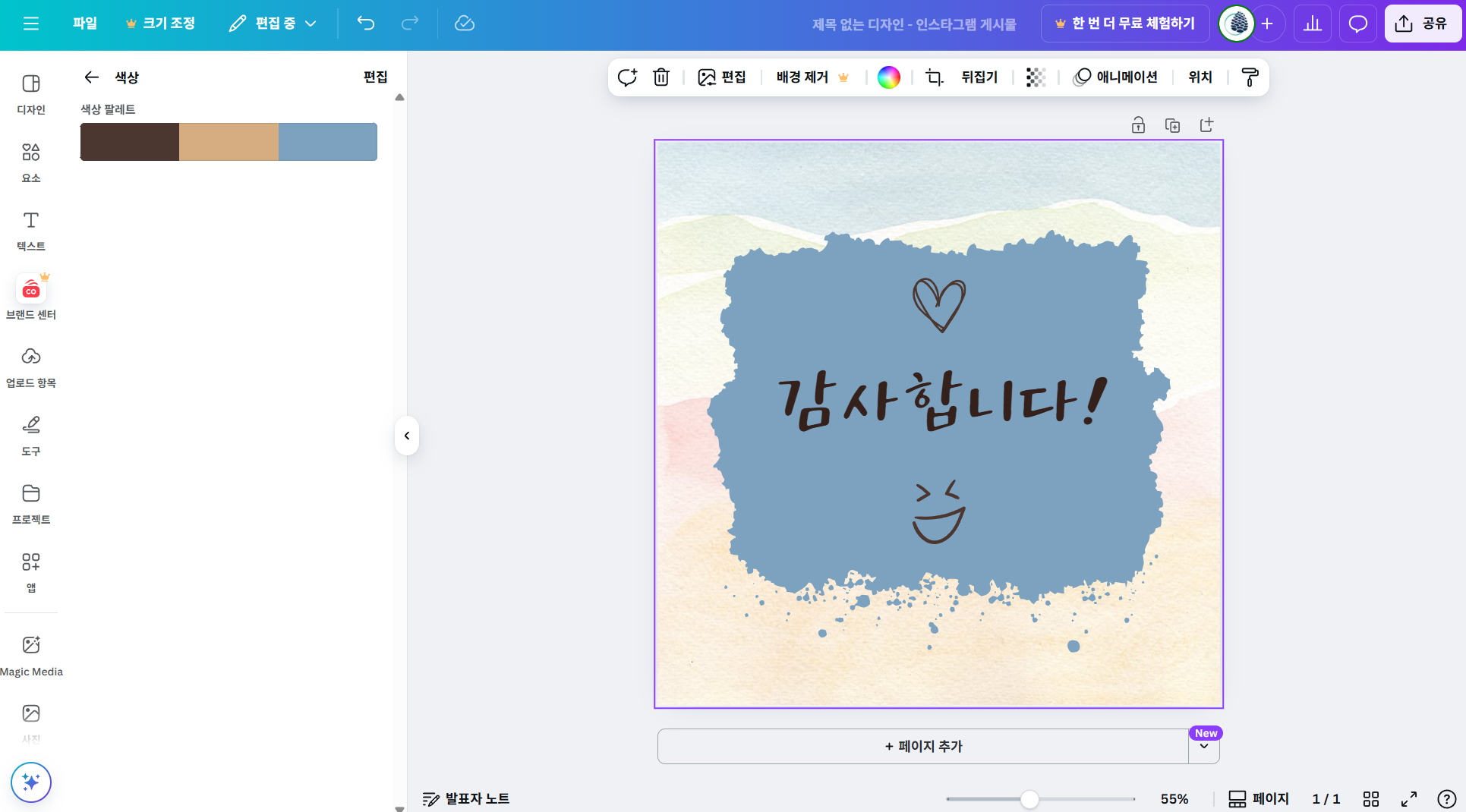 - 장점: 추출한 색상을 바로 Canva 디자인에 적용