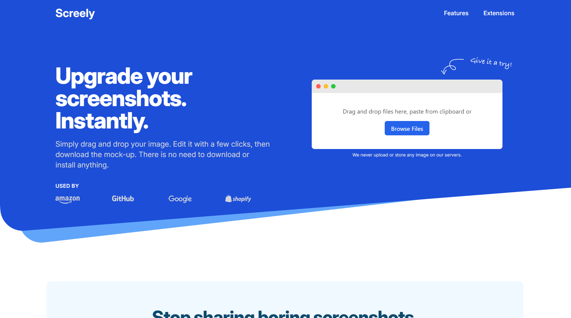 Screely는 사용자가 스크린샷을 즉시 아름다운 웹사이트 목업으로 변환할 수 있는 서비스를 제공합니다. 이 플랫폼은 사용자가 이미지를 드래그 앤 드롭하여 간단히 편집한 후 목업을 다운로드할 수 있게 해주며, 복잡한 소프트웨어나 설치가 필요 없습니다. Screely의 강력한 맞춤 설정 기능은 사용자가 다양한 배경, 창 프레임, 그리고 미묘한 그림자를 추가하여 스크린샷을 업그레이드할 수 있게 해줍니다. 또한, Screely는 100% 로컬에서 작동하여 사용자의 브라우저 내에서 파일을 로드, 편집, 내보내기를 진행하므로 개인 정보 보호에도 유리합니다. 이러한 특징들은 포트폴리오, 팀의 슬랙 채널, Dribbble 등 어디에서나 공유하기 좋은 스크린샷을 만들 수 있게 해줍니다.