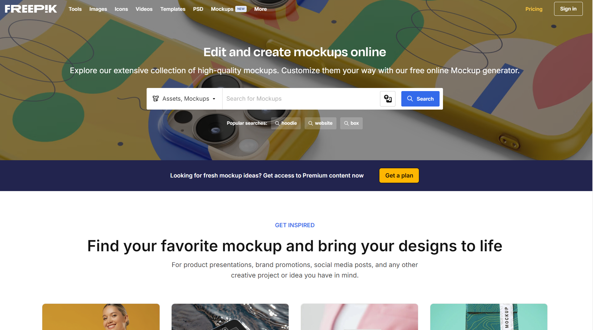 Freepik은 다양한 고품질의 이미지, 벡터, PSD 파일 및 목업 파일을 제공하는 인기 있는 디자인 리소스 웹사이트입니다. 다른 이미지나 벡터 템플릿을 이용할 때와 마찬가지로 사용자는 개인 및 상업적 목적으로 목업 이미지를 사용할 수 있으며, 출처를 표기하는 조건으로 무료 이미지도 이용할 수 있습니다. 프리미엄 회원으로 전환하면 저작권 표기 없이 더 많은 이미지와 목업 파일에 접근할 수 있으며, 무제한 다운로드와 광고 없는 환경을 경험할 수 있습니다. 또한, Freepik은 온라인 편집 기능을 제공하여 별도의 디자인 프로그램 없이도 이미지를 편집할 수 있는 편리함을 제공합니다.