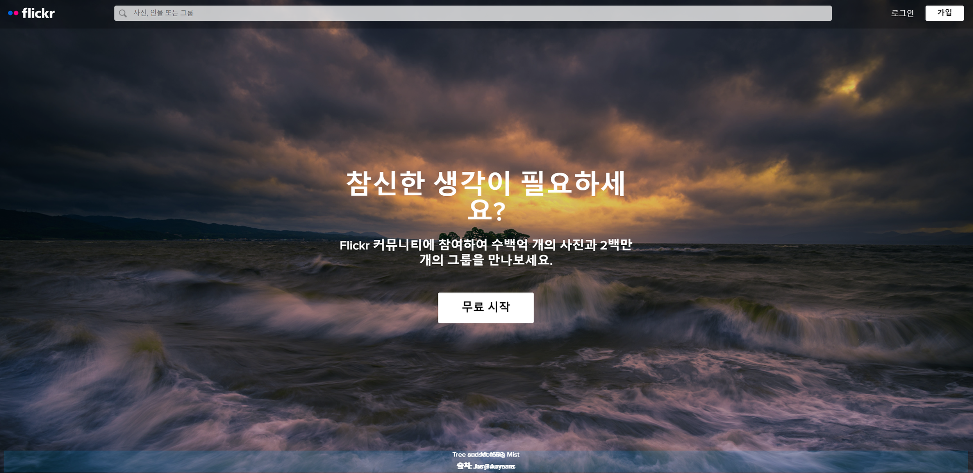 사진가들의 작품 공유 사이트나 이미지 클라우드로 많이 사용되는 사이트로 한글 검색을 지원합니다. 무료사진도 있지만 저작권 표시와 사용범위는 사진마다 확인이 필요합니다.
