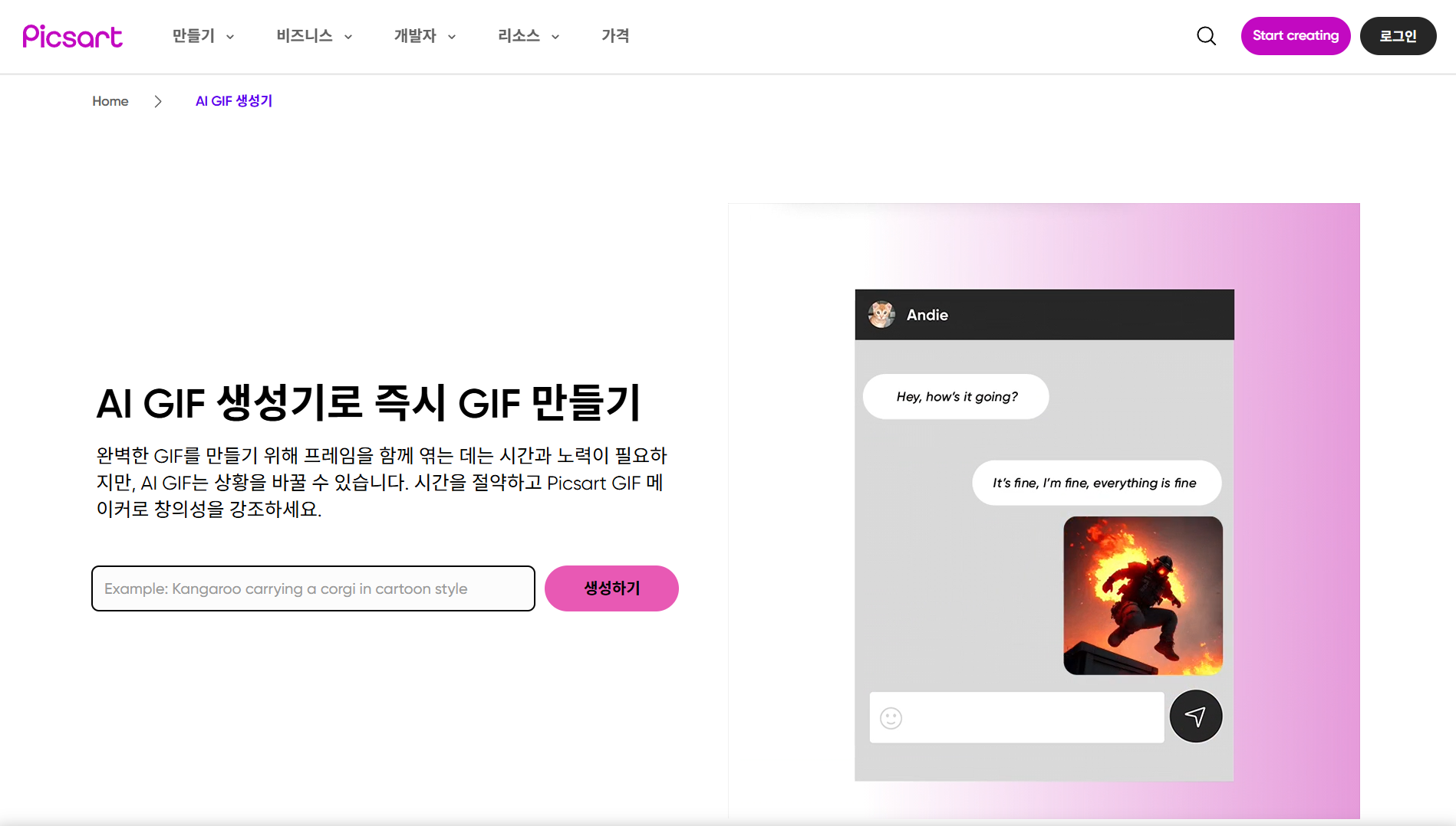 https://picsart.com/ko/ai-gif-generator/
