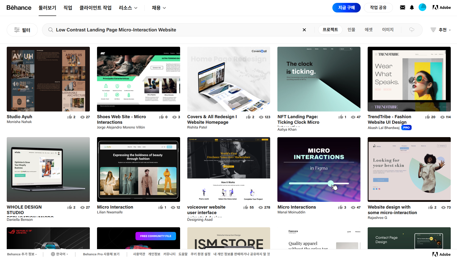 - 랜딩 페이지는 마이크로 인터랙션 + 낮은 대비의 고급형 디자인 선호
