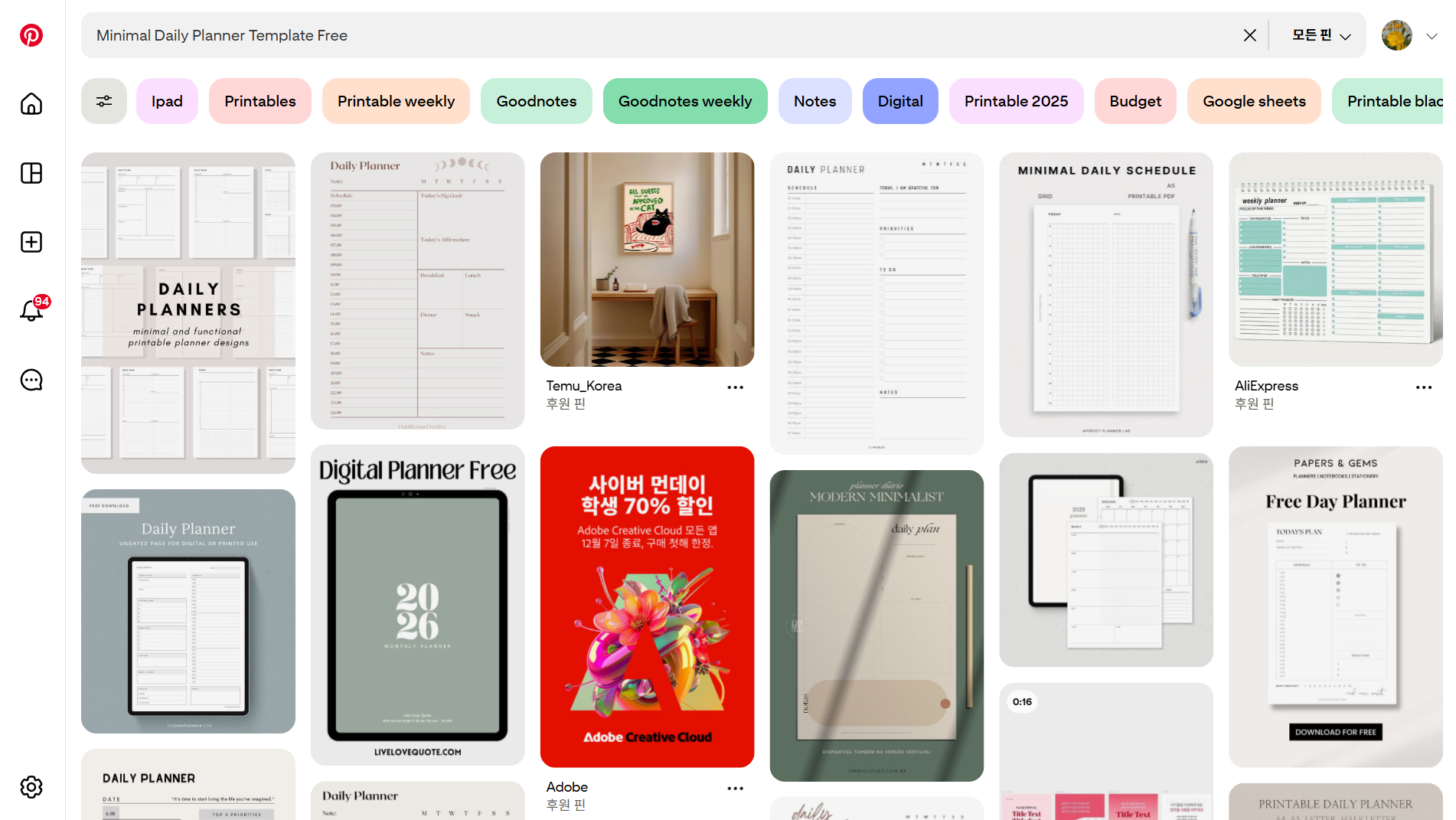 - Pinterest: "Minimal Daily Planner Template Free"로 검색하면 활용도 높은 PDF 기반 템플릿 다수