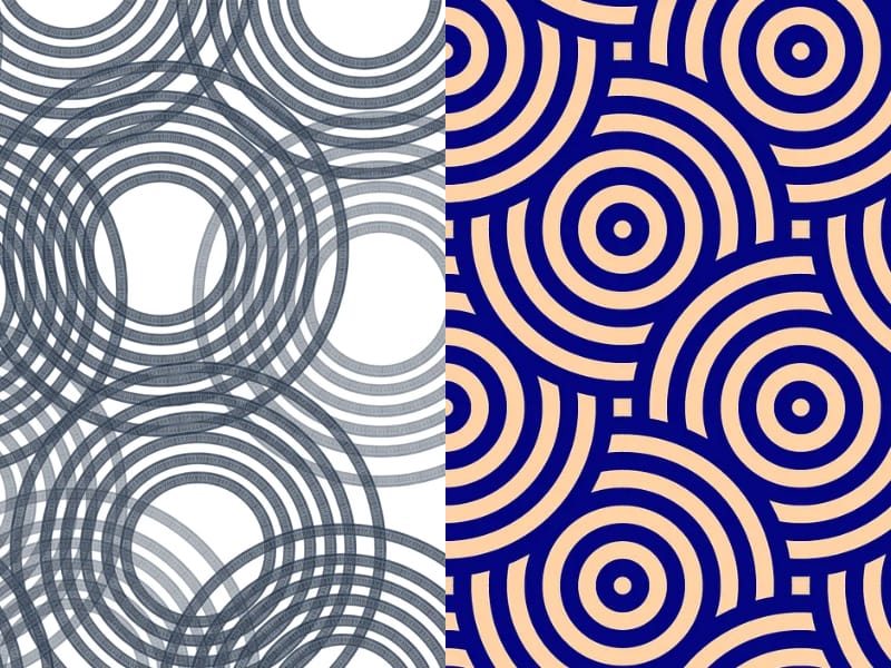 패턴은 하나 이상의 심볼이 반복되어 화면을 구조화된 방식으로 채우는 이미지를 말합니다. 이런 반복은 규칙적이거나 불규칙적일 수 있습니다. 패턴의 효과는 사용되는 기호와 반복되는 형식에 따라 달라집니다.