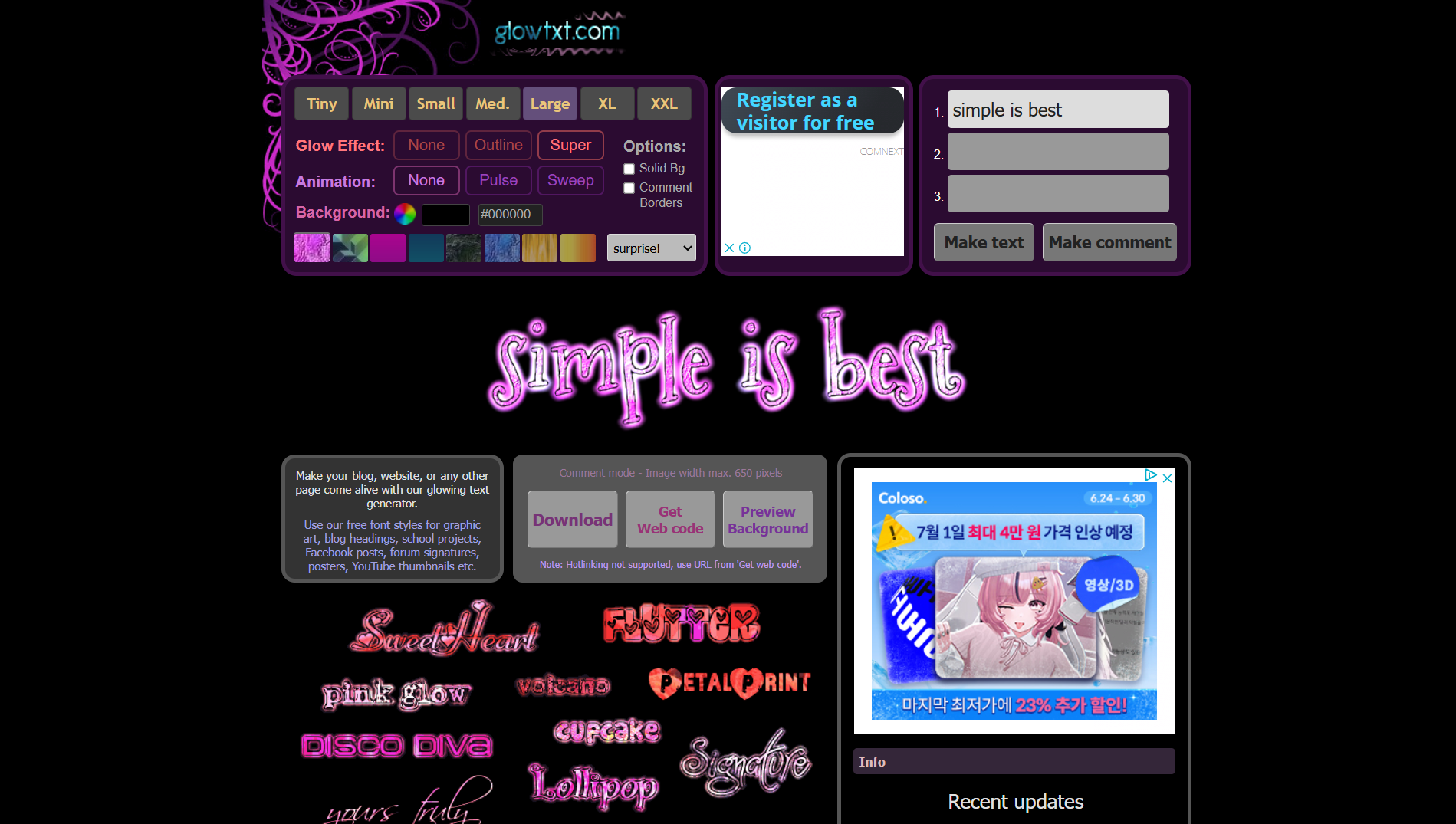- 주로 GIF 애니메이션 텍스트 효과에 집중.
