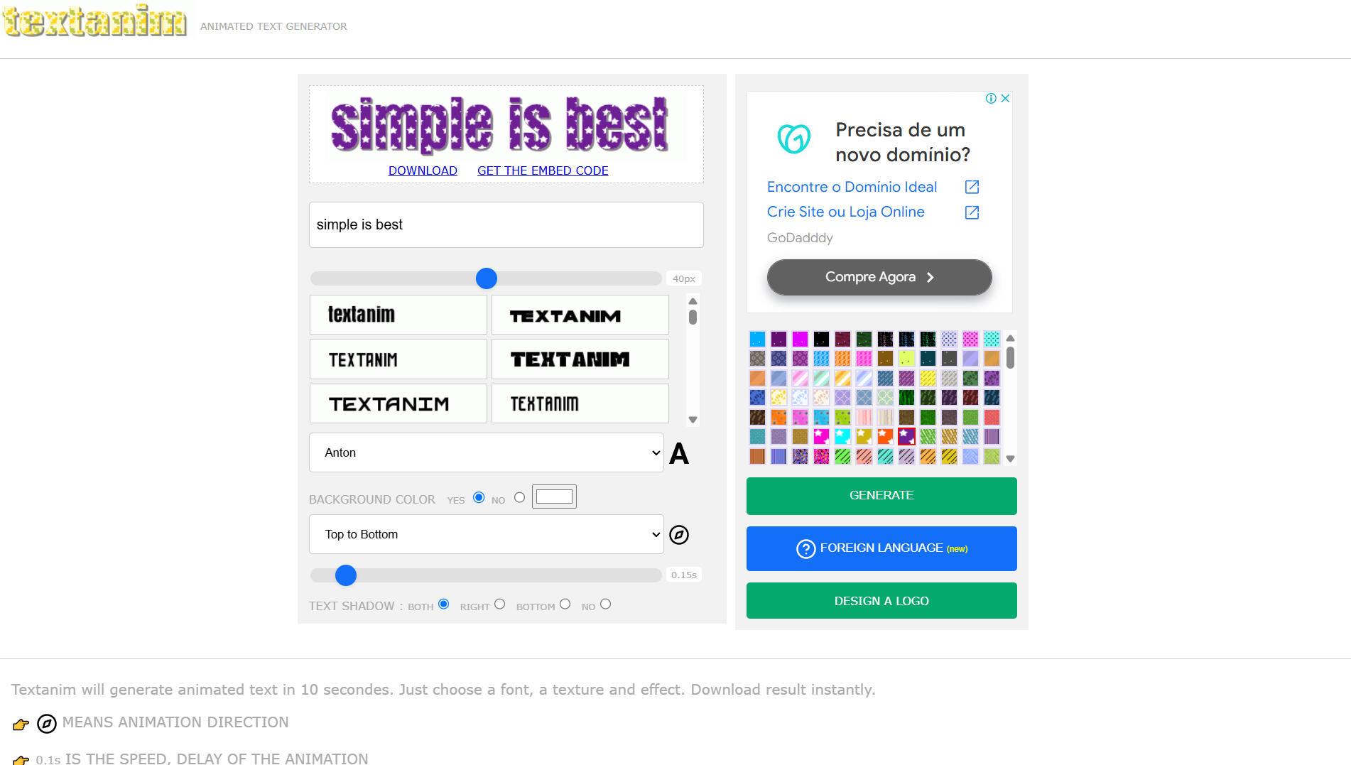주로 GIF 애니메이션 텍스트 효과를 만드는 데 중점을 둡니다. 불꽃, 반짝임, 비 내리는 효과, 글자마다 색상이 변하는 효과 등 다양한 움직이는 텍스트 효과를 만들 수 있습니다.