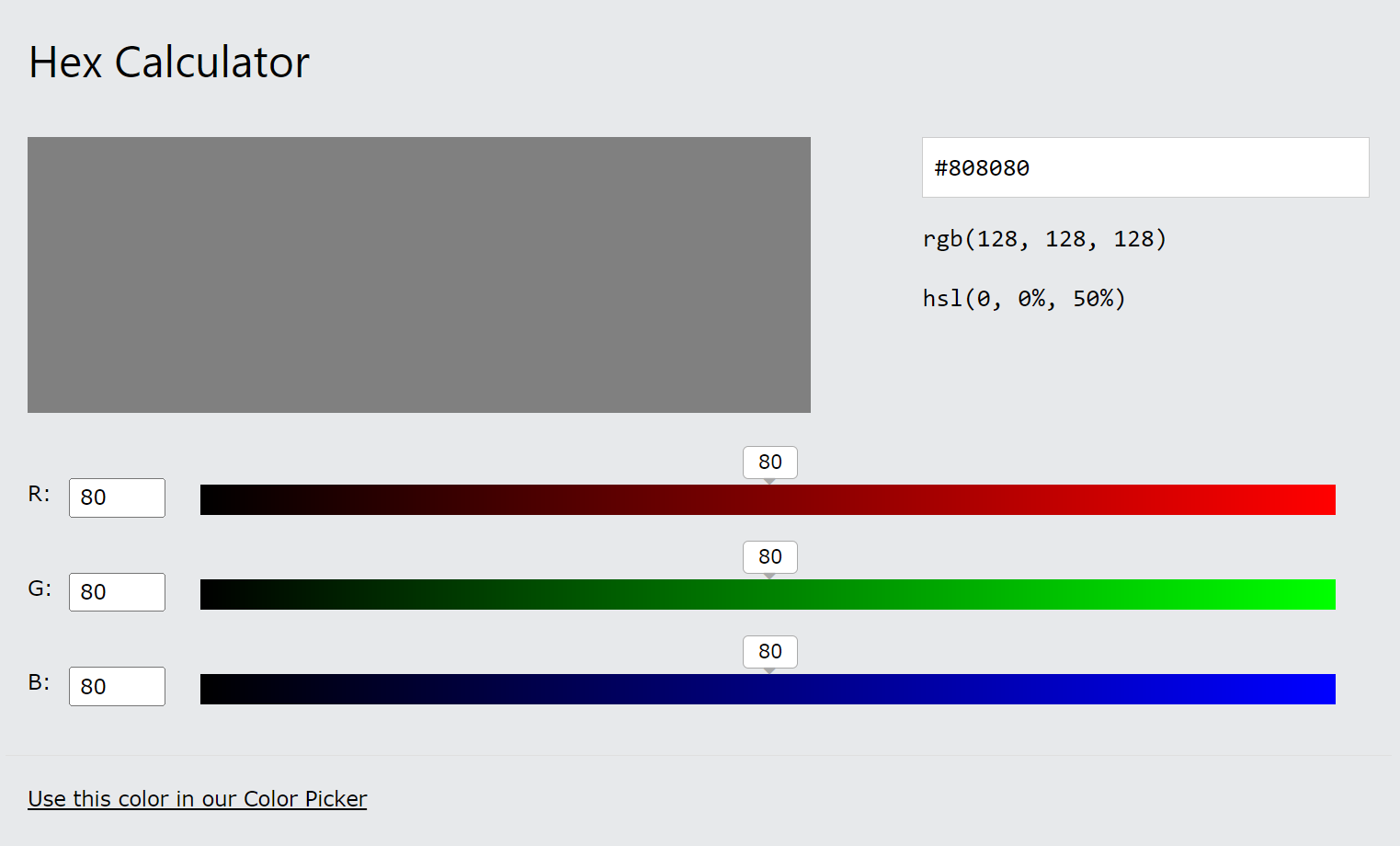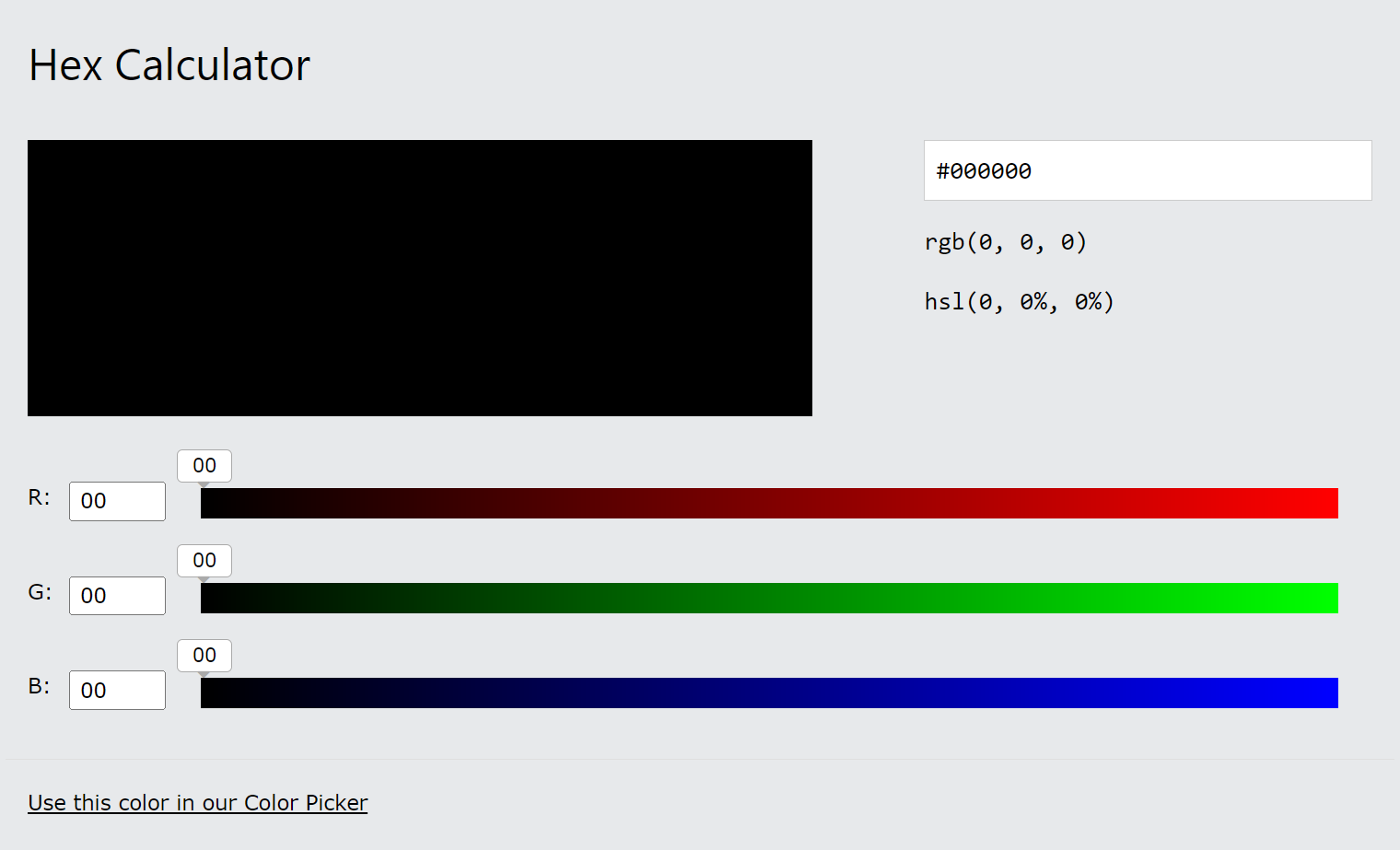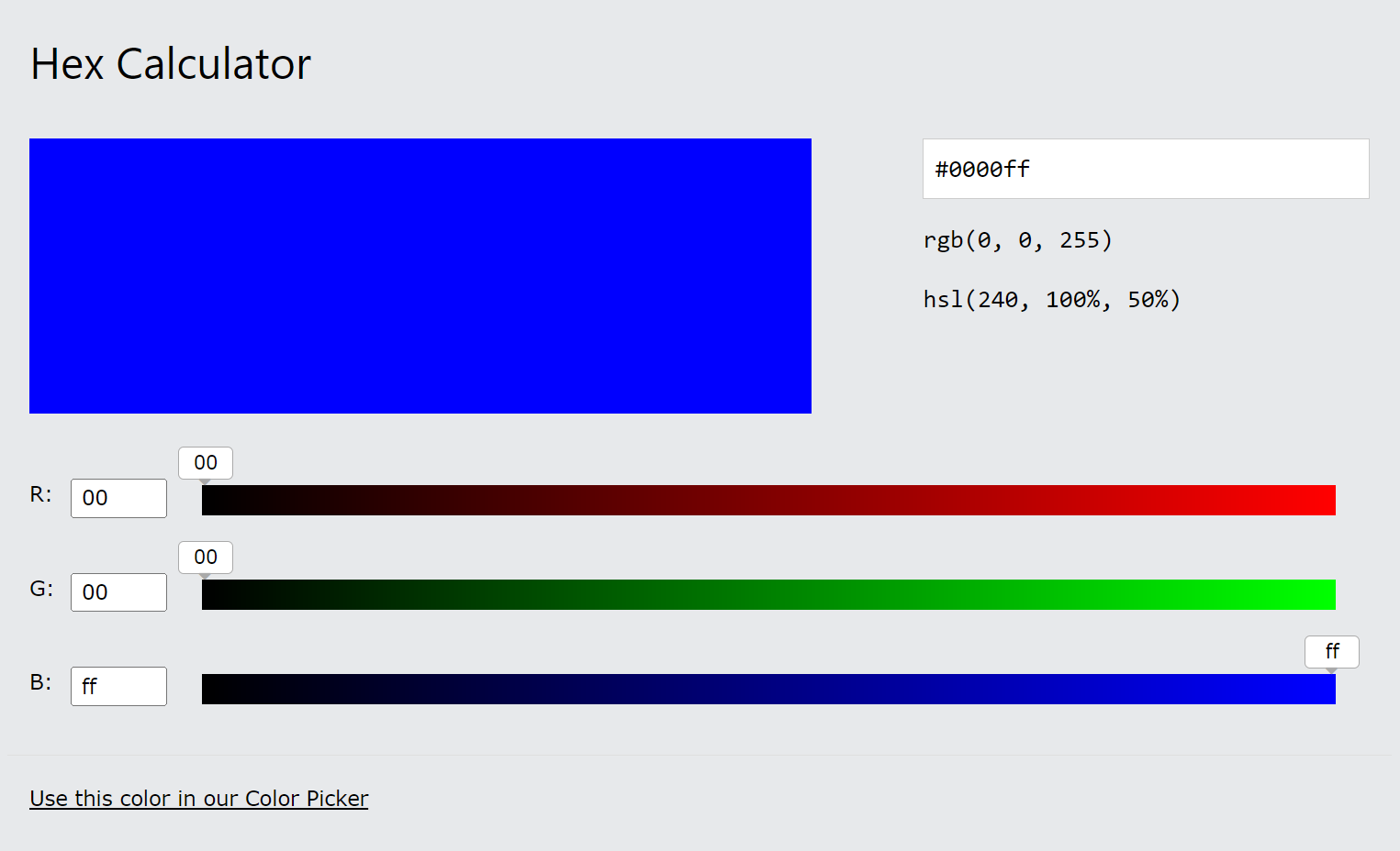 빛의 삼원색인 빨강 RED, 녹색 GREEN, 파랑 BLUE 를 모니터 화면에서 표시하기 위해서 한 채널의 두자리 십육진수가 표현할 수 있는 범위는 빛의 세기에 따라 00부터 FF까지(십진수 0에서 255까지)입니다. 즉, 하나의 채널은 256 가지의 색을 표현할 수 있으며 명도로는 00(10진수 0) 이 가장 어둡고, 중간값은 80(10진수 128), FF(10진수 255) 가 가장 밝은 명도를 가지게 됩니다.