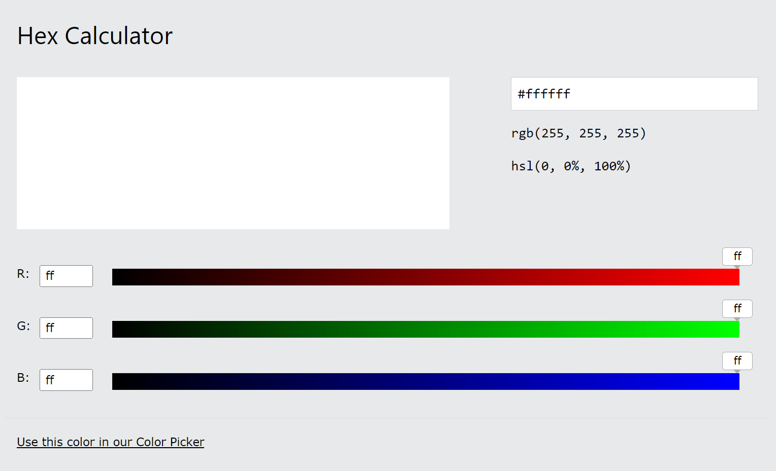 16 진법을 표기하는 0,1,2,3,4,5,6,7,8,9,a(10),b(11),c(12),d(13),e(14),f(15) 을 사용하는데 10부터 15까지의 값은 한자리로 표현하기 위해 알파벳으로 대치합니다. 가장 명도가 높은 FF를 채널에 표기하면 해당 채널의 원색을 표시하게 됩니다. 예를 들어 RGB(255,255,255) 색상을 헥스코드로 변환하면 #FFFFFF(흰색) 가 되고 RGB(255,0,0) 일 경우 #FF0000 (빨강) 으로 표기됩니다. 헥스코드는 각 채널 당 256개의 색을 표현하므로 3 채널 모두를 사용하여 나타낼 수 있는 색상은 256 x 256 x 256 의 색상, 즉 16,777,216 가지가 됩니다.