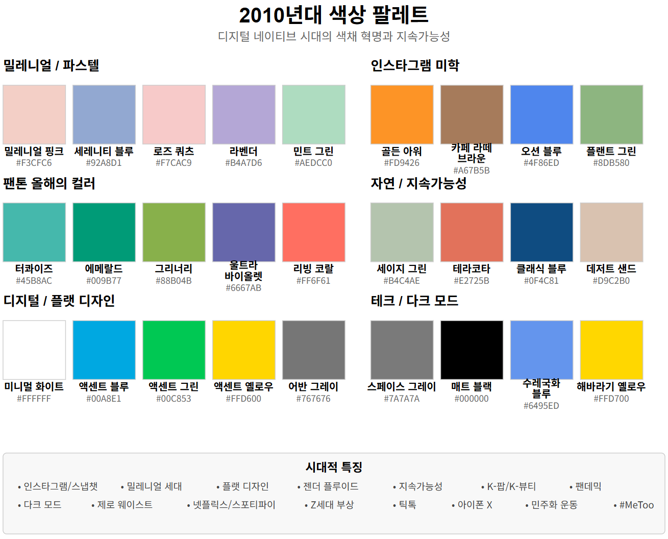 2010년대: 디지털 네이티브 시대의 색채 혁명과 지속가능성